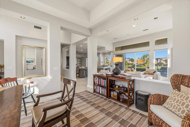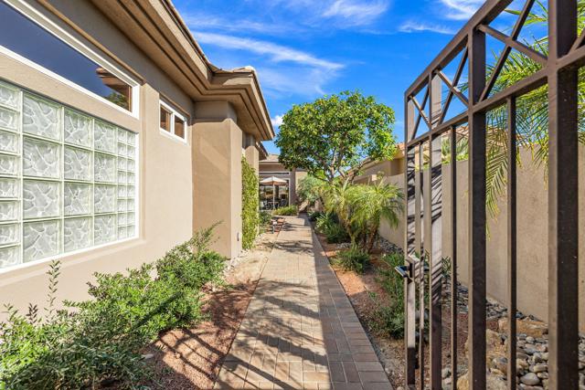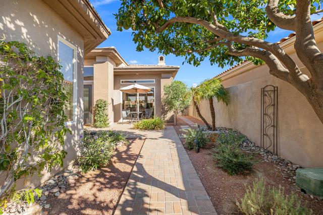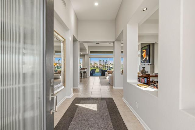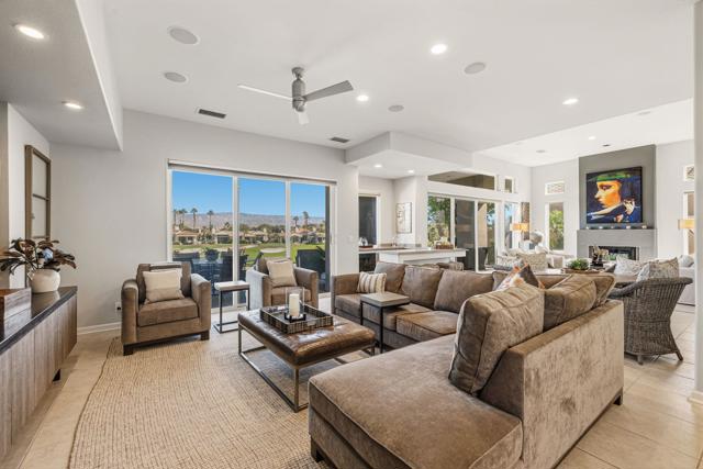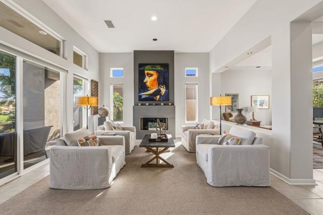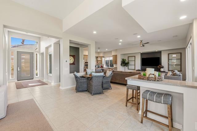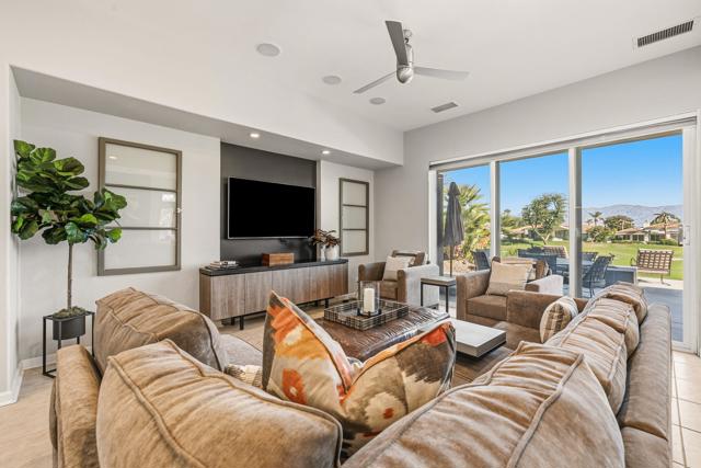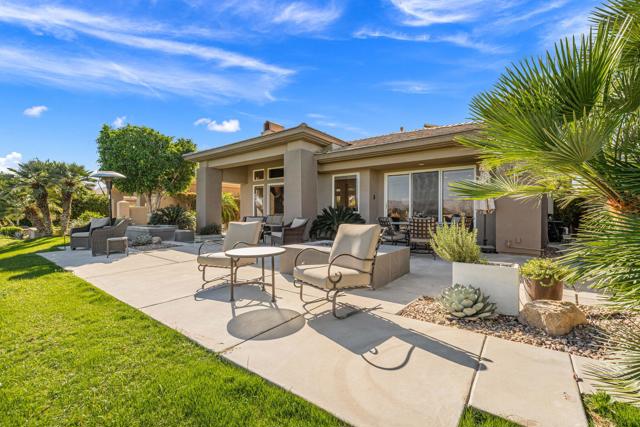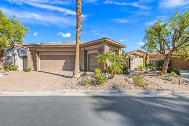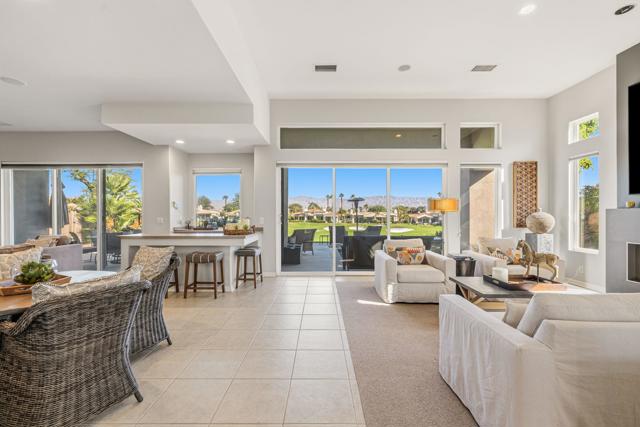 This beautifully updated Bougainvillea 2 floor plan offers the perfect blend of comfort and style in Indian Ridge Country Club. Step through the private courtyard with pavers and desert landscaping into an inviting open-concept home filled with natural light. The spacious great room features tile flooring throughout and large windows framing breathtaking views of the 3rd hole of the Grove Course and the surrounding mountains. The updated kitchen boasts stainless steel appliances, sleek new countertops, and upgraded cabinetry with pull-outs for easy organization. The expanded back patio is an entertainer's dream, complete with a spa, fire pit, and plenty of space to relax and enjoy the stunning desert sunsets. The primary suite is generous in size with a beautifully updated bathroom, while two additional guest bedrooms--each with their own en-suite bath--offer comfort and privacy for friends and family. This move-in-ready home captures the essence of desert living with stylish updates, bright open spaces, and unbeatable views. This home also has the benefit of owned solar. Offered furnished per inventory list. Golf or Club Membership available.