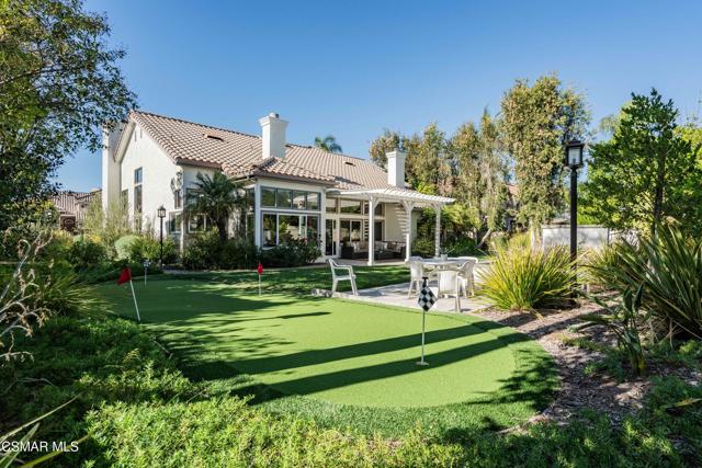 Welcome to Legacy Estates in Wood Ranch; Simi Valley's premier gated golf community. This grand scale residence offers approximately 3,506 sq. ft. of inspired living with 4 bedrooms, 4 baths and a 3-car garage. An executive level home with presence, beautiful architectural detail and a rare floorplan that can truly live like a single story. The coveted downstairs Primary Suite allows you to age in place gracefully with the comfort of never needing to move again, and the recently remodeled primary bath will thrill you at the start and finish of your day. A double-door entry welcomes you into soaring ceilings, abundant natural light, and impressive formal living and dining spaces that are ideal for entertaining. The newly reimagined open concept kitchen is stunning, with custom wood cabinetry, quartz counters and sleek stainless appliances - offering the perfect blend of warmth, quality and modern design. Thoughtful recent upgrades compliment the custom detail throughout. A dramatic staircase anchors the center of the home and leads to the second level with generous secondary bedroom suites and flexible space for guests, adult children or multi generational living. Outdoors, enjoy your private resort with an in-ground luxury spa that seats approximately 8, and a personal putting green for fun, relaxation and sharpening your short game at home. This home is the reward for a life well planned, surrounded by beautifully maintained grounds executive quality residences and close proximity to Wood Ranch Golf Club, parks, hiking trails, and community amenities. A rare Legacy Estates offering and an exceptional opportunity.