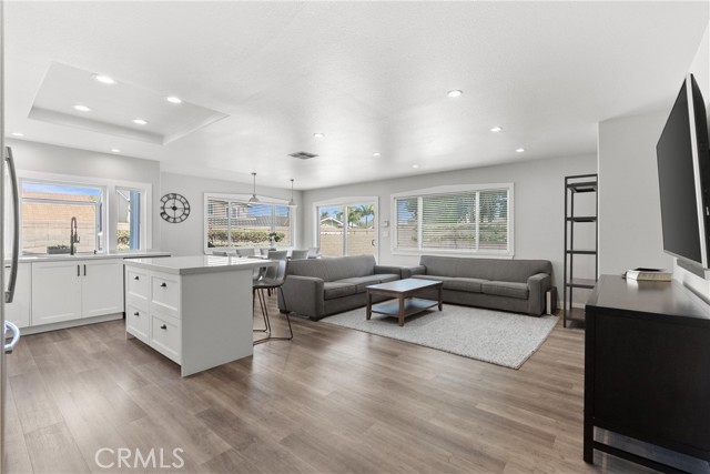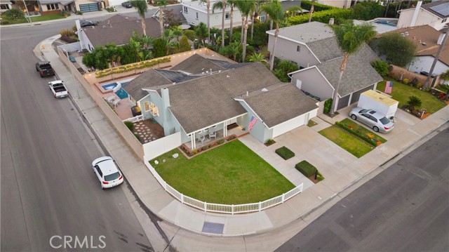 Welcome to one of Huntington Beach’s most loved and sought-after family neighborhoods, the Moffett Tract. 20392 Drew Circle is located on a quiet interior cul-de-sac on a spacious corner lot, with RV potential, and no neighbors on one side. This beautifully remodeled single-story home offers both privacy and a strong sense of community. With nearly 1700 sq ft of open and inviting living space, the home features 4 bedrooms and 2 bathrooms, thoughtfully reimagined with modern, clean finishes and functional improvements throughout. The open and bright kitchen showcases shaker cabinetry, quartz countertops, stainless appliances, and an island layout perfect for entertaining and everyday living. The great room flows seamlessly to the dining and living spaces, all enhanced with large dual pane windows, recessed lighting, ceiling fans, and newer interior and exterior paint. The central furnace has been relocated to the attic, maximizing interior space and improving comfort. Both bathrooms are fully remodeled with modern finishes and spa-like appeal. The resort-style backyard is truly the centerpiece of the home—complete with a heated in-ground pool and spa, multiple lounging and dining areas, and ample room to enjoy sunrise coffee or sunset evenings under the coastal sky. The yard offers excellent privacy and year-round usability. The landscaping is supported by automatic irrigation for easy maintenance. Additional features include an attached 2-car garage, expanded driveway, and potential RV/boat parking options. Situated on an interior street with no cut-through traffic, the home offers a calm and peaceful feel while still being just minutes from everything Huntington Beach is known for—bike to the beach, Pacific City, Downtown HB, parks, and local dining. Families love the walkability to Moffett Elementary and Moffett Park, neighborhood block gatherings, and the friendly community feel. This home is truly move-in ready with zero initial improvement costs—every major system and aesthetic upgrade has already been completed. Simply settle in and start enjoying your perfect L3: Location, Luxury, & Lifestyle!
