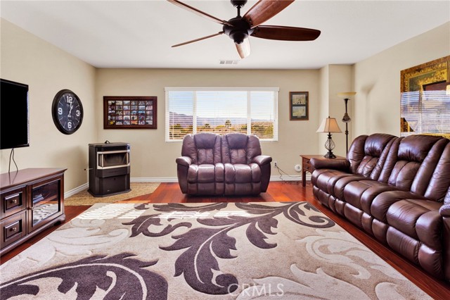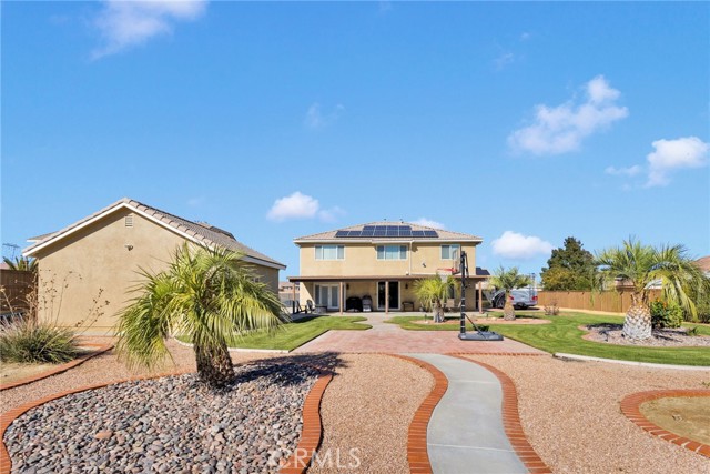 Stunning 5-Bedroom Desert Mountain-View Home in Prime Hesperia Location! Discover your dream oasis in this welcoming two-story home, perfectly situated in a desirable neighborhood with breathtaking backyard views of the majestic mountains. Enjoy spectacular sunsets from the beautifully landscaped yard, or unwind on the charming front porch. Inside, the spacious open-concept layout offers two inviting living areas, ideal for entertaining or hosting gatherings. Bedrooms & Baths: Five generous bedrooms, including two primary suites (one upstairs and one downstairs with an economical mini split air system and built-in Murphy bed), plus three full baths and one convenient half bath on the main level. Garage & Parking Galore: A massive 5-car garage setup, featuring a 3-car attached garage with an EV charger and a 2-car detached garage. There’s also ample RV parking with a 30-amp hookup and sewer connection! Outdoor Paradise: Take in direct views of the nearby desert hills and enjoy being just 1.5 miles from Hesperia Lakes, the perfect spot to watch fireworks! Nearby off-roading trails make this location a dream for outdoor enthusiasts. Solar panels to be paid off in escrow. Wellness Bonus: Relax and recharge in your very own 3-person infrared sauna. Close to everything Hesperia has to offer, yet tucked away in a peaceful, scenic setting, this home truly has it all!