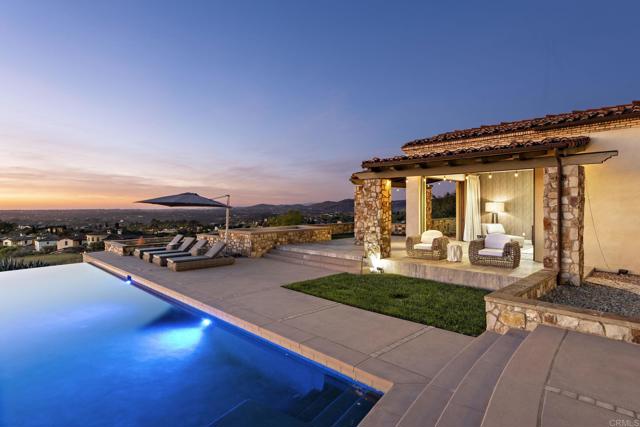 Nestled in the guarded enclave of Santaluz, 8114 Sendero de la Pradera is a 2015 Mark Agee custom built masterpiece located on the 17th hole of this stunning Rees Jones championship golf course. Spanning over 10,800 sq ft on a one-acre parcel, this elegant estate offers 5 bedrooms, 8 baths, and breathtaking ocean, valley, and mountain views. Seamless indoor-outdoor living features a vanishing-edge infinity pool, separate spa, a secondary pool with slide and al fresco entertaining pavilion. Detached, self-contained casita provides comfort for short- or long-term guests. The gourmet chef’s kitchen boasts premium appliances and marble finishes and custom cabinetry . Enjoy a private theater, game room, soundproof music studio, five-car garage, owner-owned solar, and whole-home water filtration. This property is the pinnacle of luxury, refinement, and privacy, ideally suited as an Entertainer’s CROWN JEWEL.