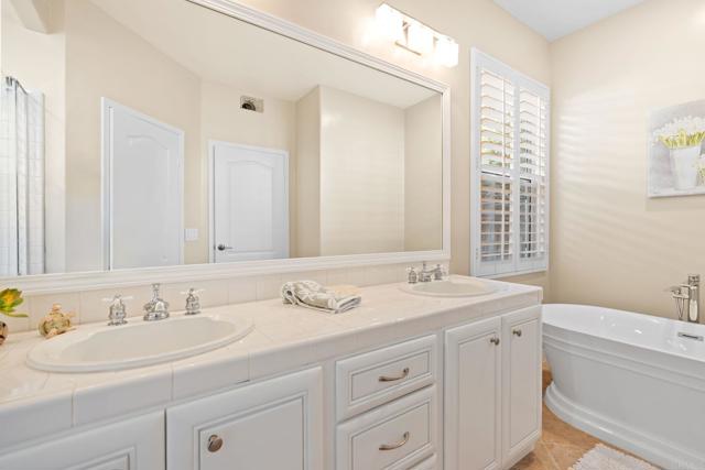 Welcome to The Fairways....La Costa's sought after, gated and tranquil community above the La Costa Golf Course and just minutes to shopping, restaurants, theatres and the Omni La Costa Resort. Sought after floorplan with primary suite and a second bedroom down with a second full bath on first floor. Third bedroom is up with a full bath and loft that makes a great office, den or guest suite (could be converted to a 4th bedroom). Spacious primary suite opens to private patio. Kitchen and breakfast nook open to cozy family room with fireplace which opens to patio. Separate dining area off living room for more formal entertaining. Light and bright interior with high ceilings and great natural light. Lushly landscaped, private yard with flagstone patio. The Fairways is a desirable gated community with private streets, 2 walking trails accessed only by this neighborhood that go from one end of the neighborhood to the other, and 7 interior parks. Low homeowner's fee and no mello roos!
