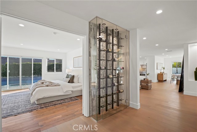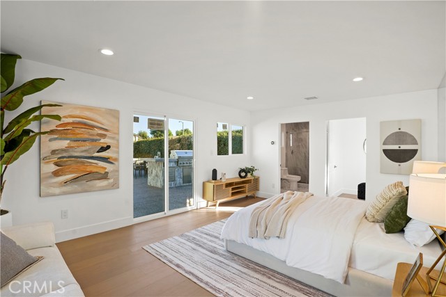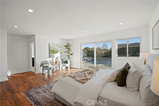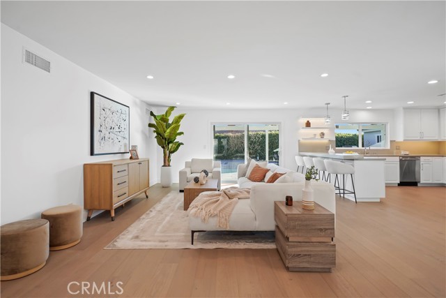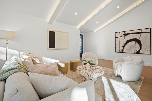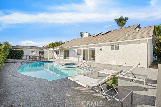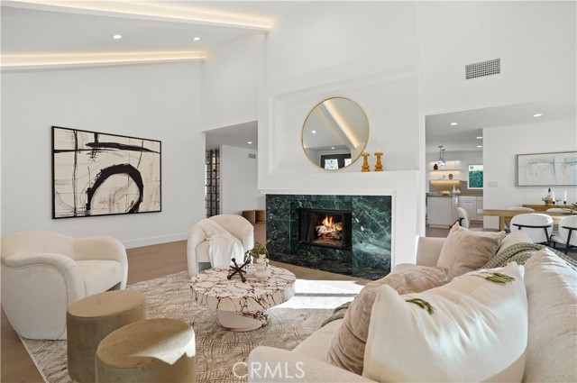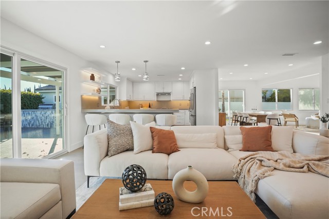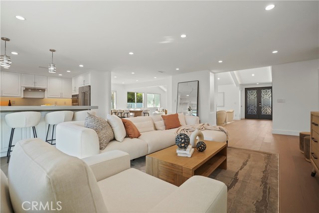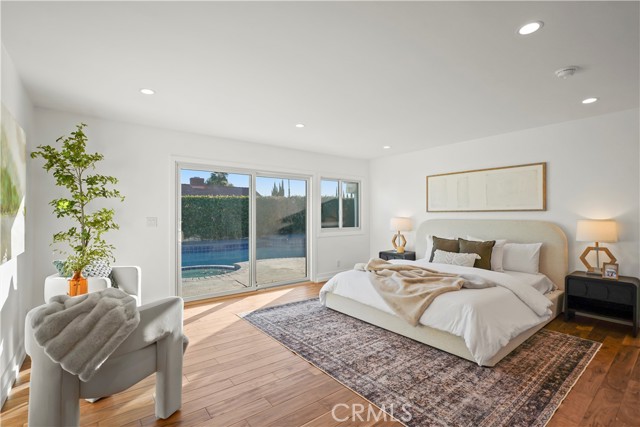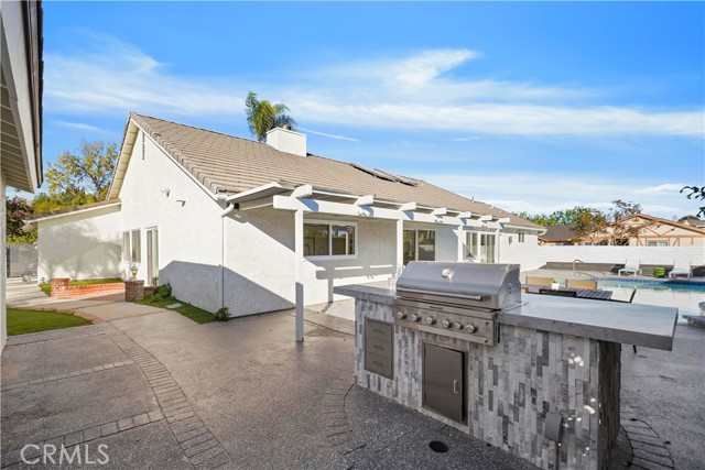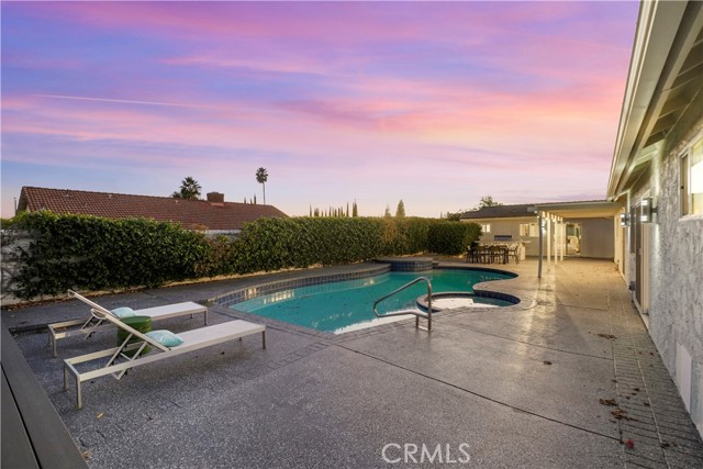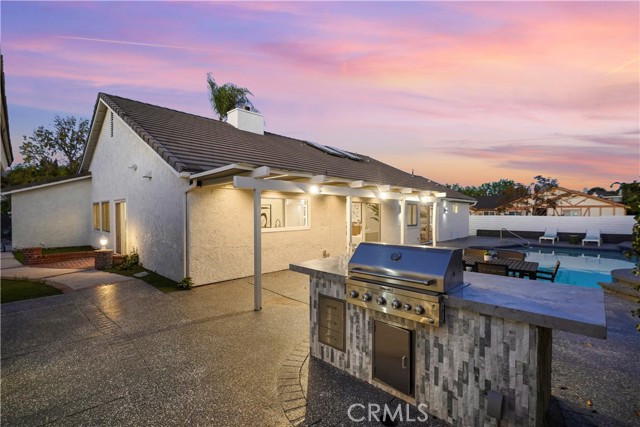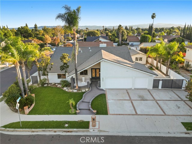 Welcome to this completely remodeled single family home nestled on a quiet cul de sac near the Porter Ranch and Northridge borders, showcasing modern luxury and comfort throughout. This stunning property totals 2,910 sq ft and offers 5 bedrooms and 3.5 bathrooms, featuring engineered wood flooring, over 30 recessed lights, newer dual pane windows and sliding doors, quartz countertops, Thor appliances, and custom cabinet lighting. The living area includes a gas fireplace and opens to a beautifully landscaped backyard with a sparkling pool, jacuzzi, fully custom built outdoor BBQ, and a separate seating area surrounded by elegant palm trees and uplighting. The primary suite offers a spacious walk in closet, pool view, and freestanding soaking tub. All bedrooms include custom built closets, and every bathroom has new plumbing, modern fixtures, and custom shower glass. Additional highlights include new electrical wiring, upgraded panel with Tesla charger, new roof underlayment, water fountain by the entry, custom metal front and side gates, finished 3 car garage with epoxy flooring and recessed lighting, massive RV access, and abundant natural light throughout. A fully permitted 373 sq ft bonus room with full bath and separate entrance provides the perfect space for a home office, guest suite, or private studio, completing this exceptional modern residence.