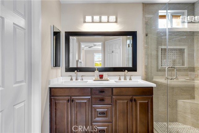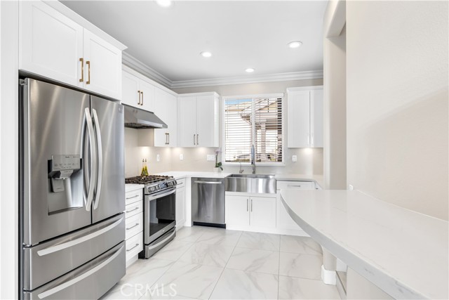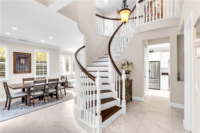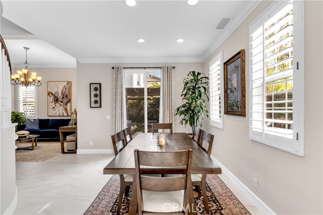 This modern 3-bedroom Detached Residence features a large private wrap-around yard, custom cabinets in the fully renovated kitchen, impeccably crafted fireplace surround & mantle in the living room, and renovated bathrooms. All living space is located on the main level, in what is the 2nd largest model in this neighborhood, creating a seamless flow from the kitchen, living, and dining areas - to the spacious backyard. The fully remodeled kitchen features bright white custom cabinetry with sophisticated drawer and cabinet hardware, quartz countertops and backsplash, along with all stainless steel appliances, range hood and an extra-large single-basin sink. Upstairs you’ll find 3 bedrooms, a laundry room and 2 remodeled bathrooms, along with a loft featuring two built-in desks, providing a ready-made home office or study space. The spacious master bedroom includes a walk-in closet with custom fit dresser drawers, and a remodeled bathroom that matches the secondary upstairs bathroom which also features dual vanities. The backyard has plenty of seating and space to BBQ, play and entertain, with no neighbors behind. Enjoy the unbeatable location—walking distance to award-winning schools, local dining, shopping, community pools, parks, and playgrounds. Home features include smart thermostat, EV-Charger, and filtration water system at kitchen sink. Additional home improvements include a whole house repipe, plantation shutters throughout most of the home, ceramic flooring downstairs and engineered wood floor upstairs. Experience the friendly charm and everyday convenience that make Ladera Ranch one of Orange County’s most sought-after communities. HOA Fees include: front of home landscaping maintenance and high speed internet.