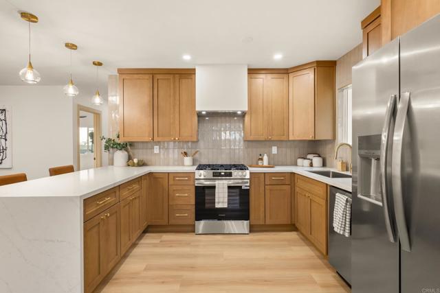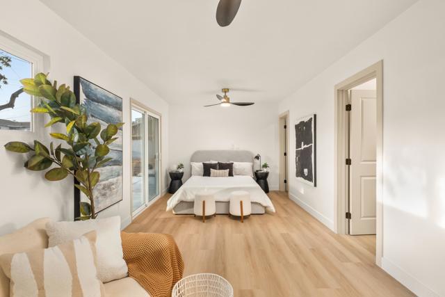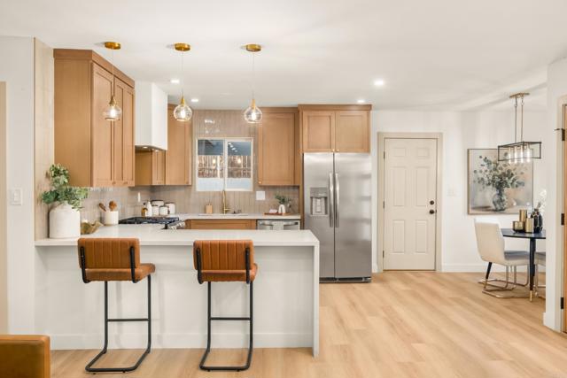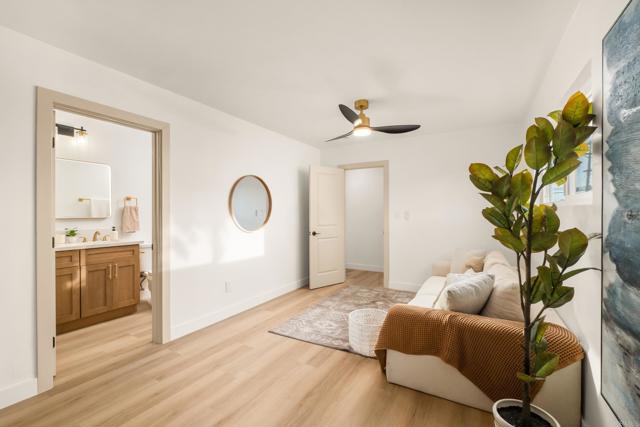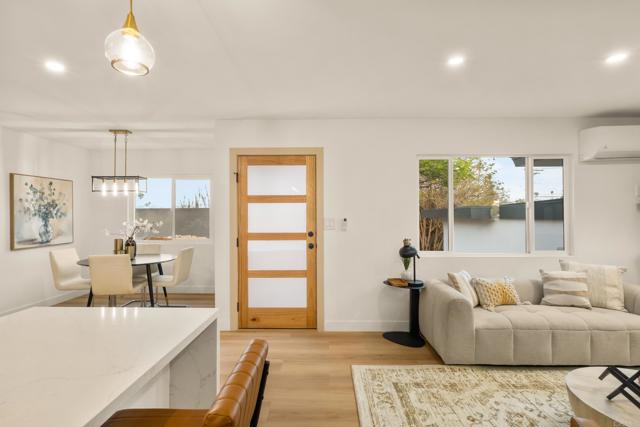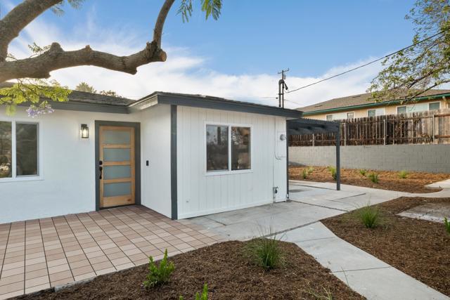 Beautifully remodeled home featuring a bright, open living area and thoughtful upgrades throughout. The kitchen shines with new cabinets, quartz countertops, a large island, new stainless steel appliances, and modern recessed lighting. Both bathrooms have been completely updated with new tile, vanities, and fixtures, including a new tub in the hall bath and a custom tile shower with dual sinks in the expansive primary suite. The primary retreat also offers a sitting area, walk-in closet, and direct access to the backyard through new glass sliders. Every detail has been refreshed! New LVP flooring and baseboards, interior and exterior paint, retrofit windows, doors, frames, casings, closet doors, and lighting inside and out. Additional upgrades include a new roof, tankless water heater, HVAC mini-splits, and new exterior landscaping with a stylish pergola perfect for outdoor gatherings. The property offers abundant outdoor space, including multiple areas for entertaining and a gated RV parking area for added convenience. Located just minutes from shopping, dining, and with easy freeway access, this home perfectly blends comfort, style, and functionality.