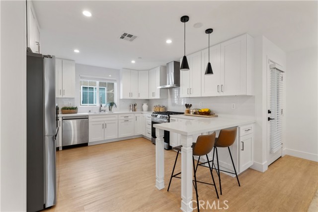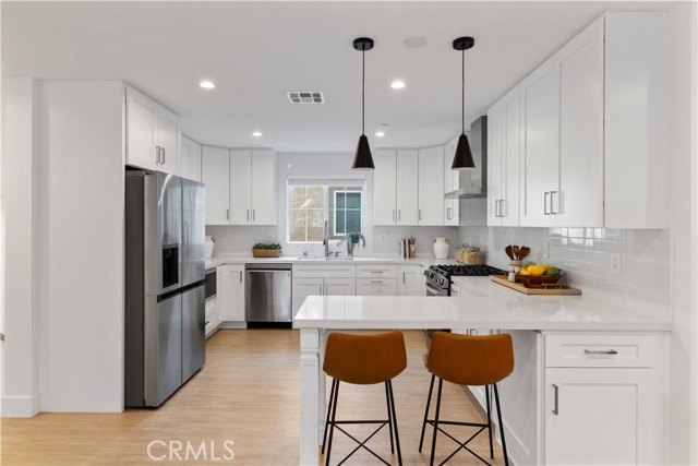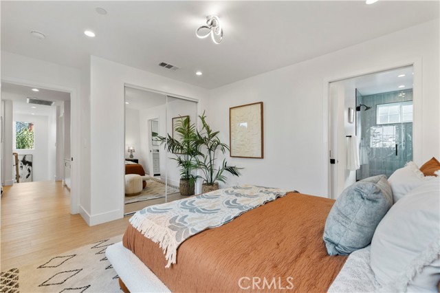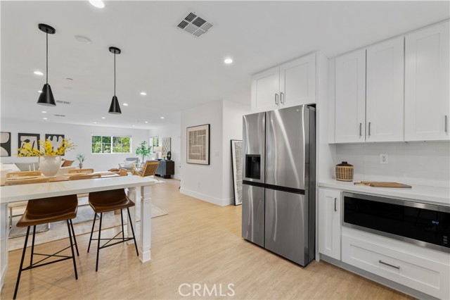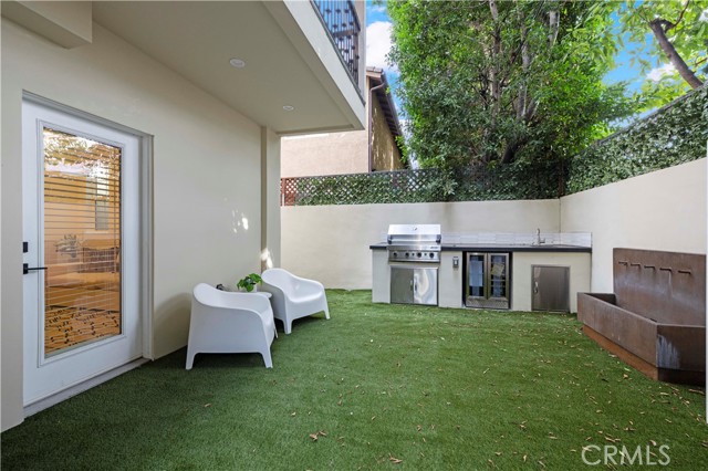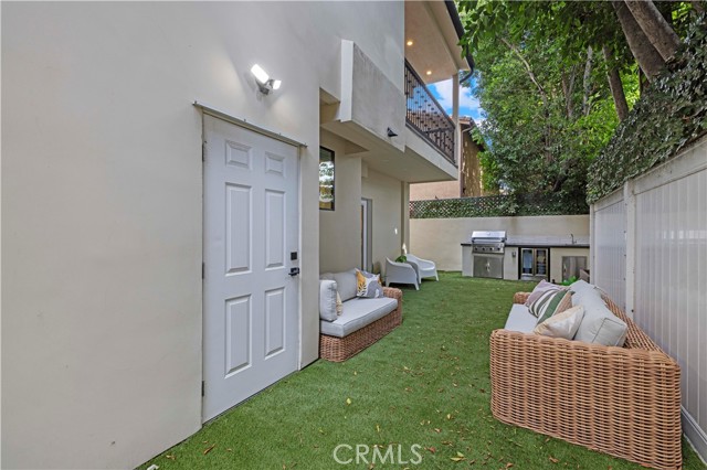 Welcome to this stunning new-construction Mediterranean home in the heart of Sherman Oaks. Built in 2023, the spacious open-concept main level offers a formal dining room with a charming balcony, a bright and inviting living room, a convenient half bath, and a chef’s kitchen featuring stainless steel appliances and a breakfast bar. Upstairs, you’ll find three generously sized bedrooms, two full bathrooms, and a dedicated laundry area with brand new LG washer and dryer. The luxurious primary suite is a true retreat, showcasing a spa-inspired bathroom with a double vanity and rainfall shower. The backyard is designed for entertaining, featuring a low-maintenance artificial turf yard and a fully equipped outdoor kitchen. Additional highlights include a main-level bedroom with its own ensuite bath and walk-in closet, a two-car garage, and a gated shared driveway. Ideally located just moments from Ventura Boulevard’s dining, shopping, and top-rated schools, this home offers the perfect blend of style, comfort, and convenience.