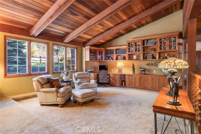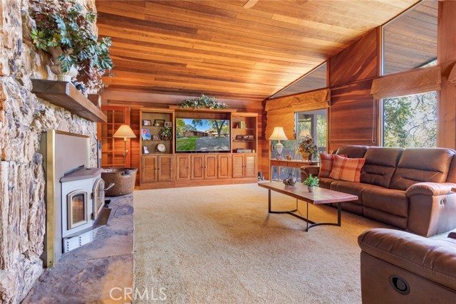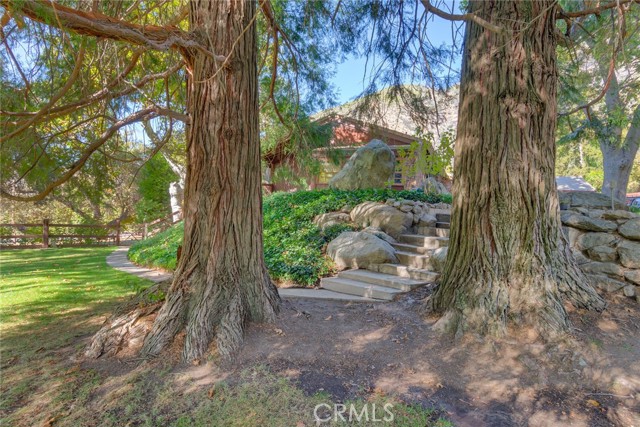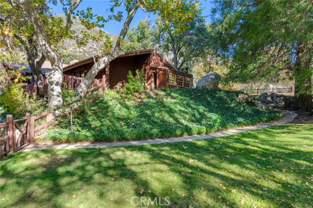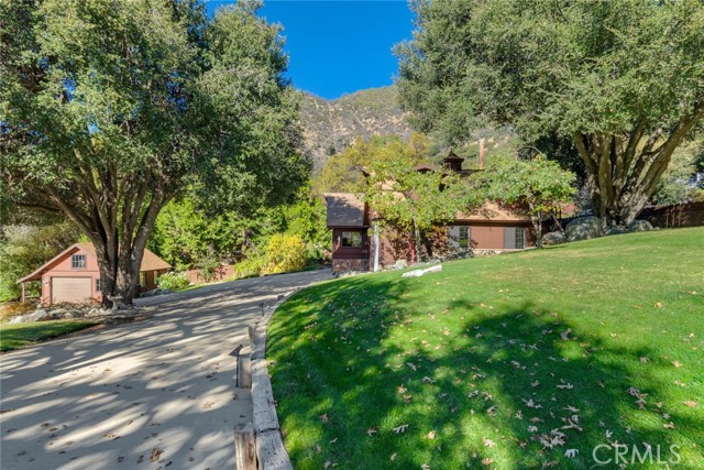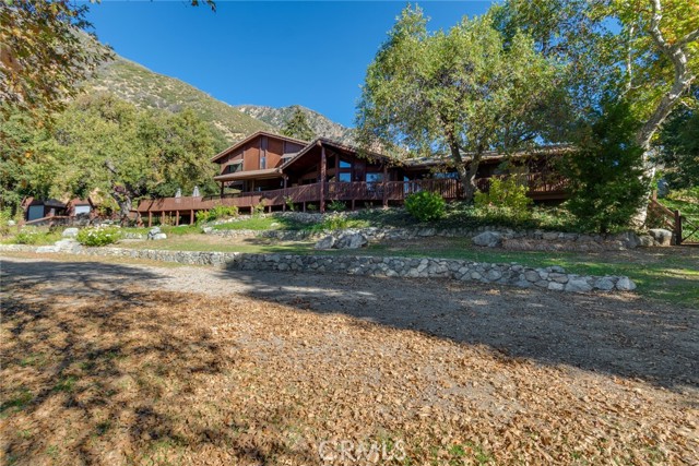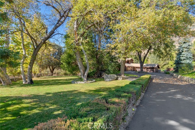 This custom ?mountain style chalet sits privately amongst big Sycamore and Oak trees. The beautiful lawns and ?the large rock formations surround the home with a natural ?fenced meadow beyond. A gated front entrance with a long drive ?way and a full circle at the ?home entry and garage. A lower entrance provides access to the two RV garages and the shop.? This home offers 3430 square feet, with four bedrooms and three bath, beautiful open beam cathedral, ceilings, large stone fireplace, natural wood accents and large windows to enjoy the beautiful surroundings. The primary suite and one other bedroom, which is currently being used as a game room, are both on the first level. The second level has two bedrooms and a full bath. The living spaces are large and open, warm and inviting. The rear deck goes the entire span of the house and is a very tranquil ?place to relax. The RV garages are approximately 40 foot and 32 foot deep. There is a guest cottage with a kitchen over one of the garages and an additional single garage workshop ?that ?stands alone. The deck and patios are beautifully designed with gardens and gathering areas that are easily accessible and are often enjoyed.? This tranquil setting enjoys the four seasons, the slightly cooler temperatures and the mountain feel without the mountain drive. The 2 acres of land provides space for additional uses, orchard, vineyard, hobbies and more. Easy to enjoy this home and the possibilities of room to personalize the use of the land. More photos coming.