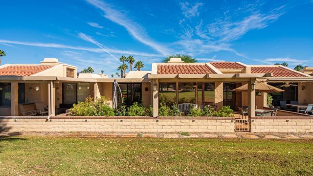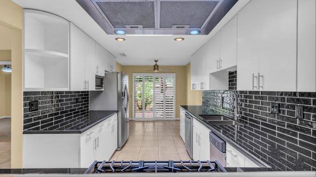 Step inside this beautifully updated 2-bedroom, 2-bathroom condo located on a quiet cul-de-sac along the 5th fairway , offering peaceful golf course views from your living room, dining area, kitchen, and primary suite.The kitchen shines with a newly updated sink, faucet, granite countertops, backsplash, and range, plus a charming breakfast nook that opens to a furnished front courtyard , perfect for enjoying your morning coffee. A KitchenAid gas grill is also included.You'll love the vaulted ceilings in the living and dining rooms, the wet bar with a beverage refrigerator, and the cozy fireplace that adds warmth and style. The home also features ceiling fans in the living room and bedrooms, plantation shutters, and electric blinds in the living room for easy comfort and light control.Natural light fills the home through skylights in the kitchen and both bathrooms. The spacious primary suite offers a large tinted dual-pane slider overlooking the fairway and an updated ensuite bathroom with dual sinks, a roomy closet, and an updated shower, your own private retreat.Step outside to the enormous back patio, which spans the entire length of the home and comes furnished with outdoor seating and a fire pit ,the perfect spot to unwind with an evening glass of wine while taking in the golf course views.You'll appreciate the two-car attached garage featuring a utility sink and pull-down stairs leading to convenient overhead storage ,perfect for keeping things organized and out of sight.Recent upgrades include a new 5-ton Goodman AC/Heater (installed in 2024) providing comfort and peace of mind for years to come.Located just 100 feet from the community spa and pool, and minutes from grocery stores, restaurants, a movie theater, and Palm Springs International Airport, this home truly offers it all.Whether you're searching for a peaceful full-time residence or the perfect vacation getaway, this condo combines style, comfort, and resort living at its best.