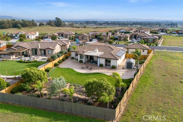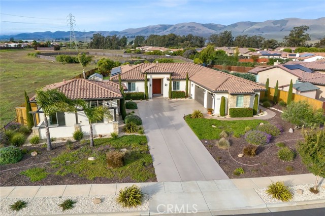 Welcome to 1950 Vista Del Sol, an elegant single-level home in the sought-after Enclave at Costa Pacifica on the Nipomo Mesa. This gorgeous home offers 4 bedrooms, 3.5 bathrooms, a 3 car garage, and a detached 1 bedroom Casita with its own living room, kitchenette, and full bath, perfect for guests, rental income or multi-generational living. Inside, discover nearly 2,800 sq ft of beautifully maintained living space featuring high ceilings, recessed lighting and a gas fireplace. The open-concept kitchen features granite countertops, stainless steel appliances, a large island with seating, all open to the living room. The primary suite offers patio access and a luxurious ensuite with dual vanities, soaking tub, and separate shower. The oversized 3-car garage provides extra room for a workshop or gym, while the spacious laundry room includes a sink and ample storage. Step outside to enjoy a covered patio overlooking the beautifully landscaped yard with mountain views, a perfect setting for outdoor dining or relaxing. The backyard also includes fruit trees such as Clementines, Meyer lemons, and six varieties of apples, as well as a blueberry bush. Additional highlights include owned solar, mature landscaping, and generous seller upgrades. Set on a private corner lot just under a half-acre, this home combines space, comfort, and convenience with easy access to Highway 101, San Luis Obispo, Santa Maria, and local beaches. This property is move-in ready and should not be missed! Information not verified.