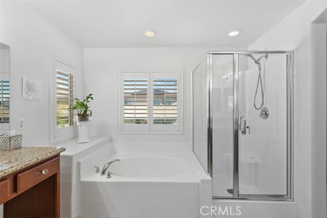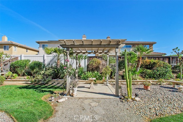 Welcome to this beautifully cared-for Winchester home tucked away on a peaceful cul-de-sac. From the charming curb appeal to the elegant front entry, every detail reflects pride of ownership. Inside, soaring ceilings in the formal dining area and rich hardwood floors throughout the main level create a warm, inviting atmosphere. Plantation shutters, a cozy living room fireplace, and abundant natural light add to the home’s comfort and style. The spacious kitchen features an island, granite countertops, and a water purifier under the sink. The eat-in area opens to a lushly landscaped backyard—ideal for outdoor dining and relaxation. A downstairs bedroom/office, convenient half bath, and separate laundry room complete the first floor. Upstairs, the primary suite offers a private retreat with double-door entry, a sitting area leading to a balcony, and a luxurious bath with dual vanities, a soaking tub, separate shower, bidet, and a large walk-in closet. Two additional bedrooms, each with walk-in closets, share a hallway bath with dual sinks. A built-in workstation provides the perfect spot for study or remote work. Enjoy a beautifully landscaped backyard with fruit trees, cactus garden, and a wooden pergola. Additional highlights include a 3-car tandem garage, newer water heater, solar panels, whole-house water softener, dual AC units, and a 5,662 sq. ft. lot offering ample outdoor space. This home combines elegance, functionality, and energy efficiency—ready to welcome its next owner.