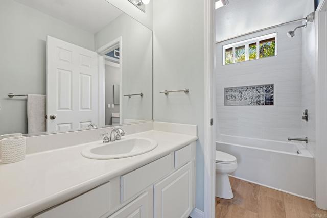 6325 Alexandri Circle offers the perfect blend of exceptional style, comfort, and prime location. This beautifully updated 3-bedroom, 2.5-bath home with a dedicated office is the largest floor plan in Brindisi (2,166 sq. ft.) and is filled with natural light. Enjoy brand-new luxury vinyl plank flooring throughout all rooms, newly remodeled white kitchen with quartz countertops, timeless tile backsplash, and modern smart-home lighting for added convenience. Microwave, dishwasher & washer/dryer are all less than 2 years old. Additional upgrades include wood shutters, air conditioning and ceiling fans for year-round comfort. Step outside to your sunny backyard retreat, complete with built-in BBQ, paver patio, open views, and no neighbors behind—perfect for relaxing or entertaining. The spacious primary suite impresses with big windows and an upgraded bathroom with a modern walk-in shower, designer wood ceiling and dual closets. Epoxy flooring awaits in the two-car garage with tesla EV charger and separate laundry room add function and ease. Located in a private gated community with friendly neighbors, a resort-style pool and spa, near Top-Rated Carlsbad Schools, Aviara Sports Park, shopping, dining, and beautiful beaches. HOA membership includes exclusive Park Hyatt Aviara perks, like discounts on golf and dining. Move-in ready, low-maintenance, and ideally situated in one of Carlsbad’s most desirable neighborhoods—this home truly has it all.