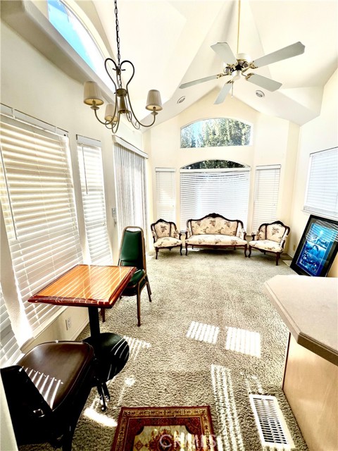 Beautiful Very Well Kept 1 Bedroom,1 Bathroom Small Home with a Loft. Home is 399.21 Square feet. Home has a Living Room & a Spacious Bedroom . Has a full Kitchen with a Cook Top Stove and a Microwave Oven. Has Carpet & Vinyl flooring in Kitchen & Bathroom. Has upstairs LOFT for additional bunking space. Has Ceiling Fans in Bedroom & Living Room. Has Central Air & Heating. Located in the prestigious Golden Village Palms RV Resort in West Hemet. Enjoy all the amenities included : Community Laundry Room, 3 LARGE Pools, 2 Jacuzzis, Volleyball Courts, dog parks ,putting green, Gym, Pool Hall with Pool Tables. Large Ballroom can be reserved for events for a fee. The space rent includes water, sewer, trash pick up once a week, WiFi, cable & use of the community amenities. This a 55 and Over Community. At least 1 Owner needs to be 55 & Over.
