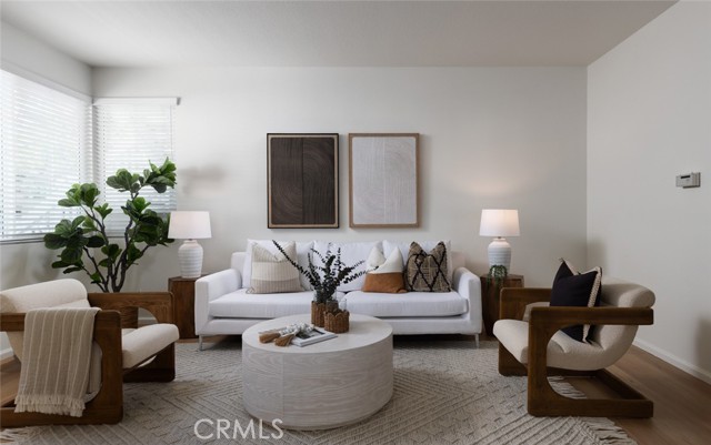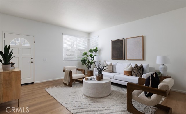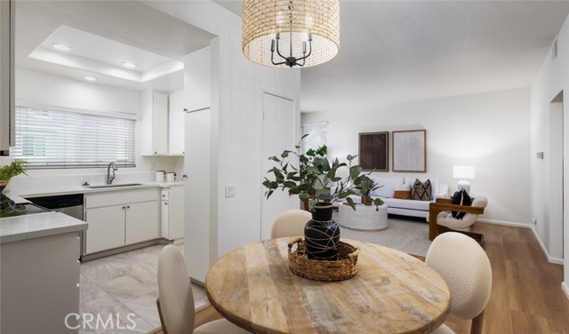Beautifully updated single-story residence located in the desirable Northwood Horizon community of Irvine. This two-bedroom, two-bath floor plan features a spacious front patio entry and a well-designed split-bedroom layout. The home has been thoughtfully upgraded with newer laminate flooring, updated vinyl windows, fresh interior paint, modern light fixtures, refreshed bathrooms, and an updated kitchen complete with crisp white cabinetry, an oversized stainless-steel sink, and stunning stone countertops, making this home truly move-in ready. The generous great room with a separate dining area creates an ideal space for both relaxing and entertaining. Situated in an interior end-unit location, the home offers direct access to the outdoor patio from the primary bedroom. Additional conveniences include a dedicated parking space in the shared detached garage. Just steps from beautiful Orchard Park and close to award-winning schools, including Northwood High School. With easy access to the 5 freeway, toll roads, shopping, dining, and entertainment, along with the benefit of low HOA dues and no Mello Roos, this is a fantastic opportunity to own in one of Irvine’s most sought-after neighborhoods.