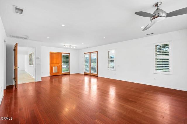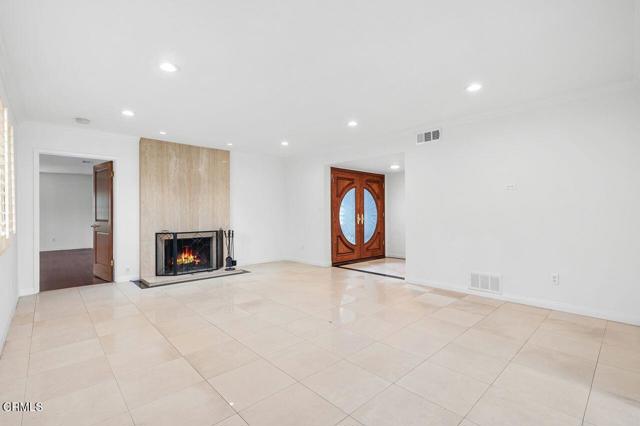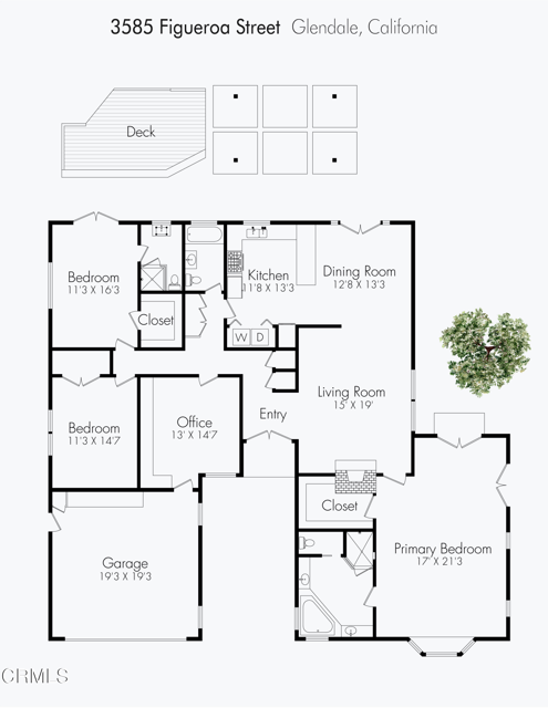 Welcome to 3585 Figueroa Street, a charming single-level 3-bedroom, 3-bath corner lot home with a versatile office/den, thoughtfully designed for comfort and everyday living. Manicured landscaping, a grassy lawn, and a welcoming pathway greet you in the front yard. Inside, the foyer leads to the spacious living room, featuring a floor-to-ceiling statement fireplace and windows that fill the space with natural light. The open-concept layout continues into the dining room, where double doors provide effortless access to the backyard. The dining area flows into the well-appointed kitchen, complete with a convenient laundry closet. The expansive primary suite sits at the front of the home and offers its own private retreat. Enjoy access to both the side and backyard, a beautiful bay window with built-in seating, a deep closet, and a full ensuite bath. On the opposite side of the home, you'll find a versatile office connected to the attached two-car garage, along with two additional bedrooms. One of the bedrooms includes backyard access and its own ensuite 3/4 bath. The backyard is an entertainer's dream, showcasing stunning mountain views, a raised deck, and a beautiful pergola, perfect for lounging or outdoor dining. A rare find in an idyllic setting, this Glendale gem offers space with an indoor-outdoor flow and timeless charm.