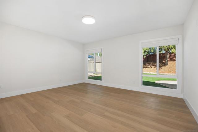 Stunning single-story home in the highly desirable Greens of Rancho Bernardo. This beautifully remodeled residence showcases high-end finishes & modern elegance throughout. Brand new luxury vinyl plank flooring that enhances the spacious & open floorplan. Impressive kitchen, featuring abundant cabinetry, modern finishes, and a large island adorned with exquisite marble countertops & waterfall edges. Luxurious primary bathroom, complete with a custom marble shower enclosure that exudes sophistication. Enjoy seamless indoor/outdoor living with multiple sliding doors that open to a large, flat, usable yard, perfect for outdoor entertaining. The yard is beautifully landscaped with lush turf, inviting patios, and drought-resistant plants. Experience the resort living of the golf course and Rancho Bernardo Swim & Tennis Club.