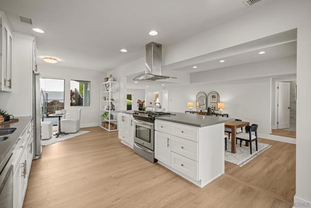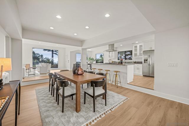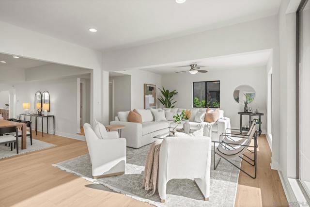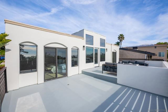 Perched high on an elevated corner lot in North Pacific Beach, this stunning coastal-contemporary masterpiece commands jaw-dropping, unobstructed 180-degree views of the Pacific Ocean, Mission Bay, and brilliant nightly sunsets. Bright, open living spaces flow effortlessly into a large kitchen. A coveted entry-level bedroom and full bath offer flexibility, while the luxurious primary retreat opens directly to the expansive deck—perfect for entertaining or simply soaking in the views. A rare detached oversized garage includes a finished bonus room with ADU potential for income or guests. Just minutes to the sand, Kate Sessions Park, top schools, and the best dining in North PB and Bird Rock—this turn-key view home is the coastal retreat you’ve been waiting for.