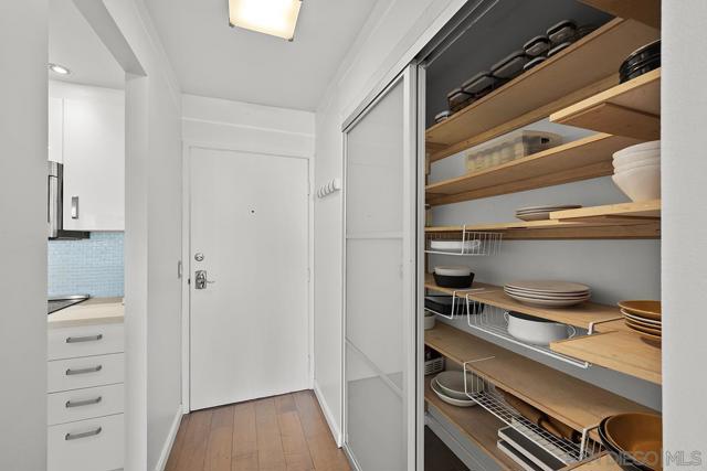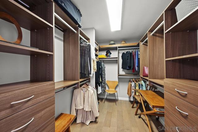 Embrace vibrant city living in this light-filled northwest-corner residence at Coral Tree Plaza, where airy spaces and modern style define everyday comfort. Sunlit and inviting, the expansive living area features sleek engineered wood flooring, custom built-ins, and seamless access to an oversized balcony—an ideal spot to entertain or simply savor San Diego’s signature climate and peaceful city views. The kitchen shines with quartz counters, subway-tile backsplash, contemporary white cabinetry, Bosch appliances, recessed and pendant lighting, a large pantry, and tile flooring. Originally a 3-bedroom layout, the generous bonus den/office can be easily re-enclosed to create a true third bedroom. The primary suite includes a spacious custom walk-in closet, complemented by a convenient wall of built-ins concealed behind mirrored doors that catch and reflect the day’s sunset. The tastefully updated bath features quartz counters, dual vanities, thoughtfully designed cabinetry, and a walk-in shower. The guest bath offers a modern pedestal sink, stylish sconce lighting, a walk-in shower, and ample built-in storage. In addition to a dedicated laundry closet, you'll find a large utility closet offering even more storage. Other highlights include side-by-side parking near the elevator and a dedicated storage cage. Just moments from Balboa Park and some of Hillcrest's best establishments, this condo balances the comfort of a home retreat with the vibrancy of city life. As one of Hillcrest’s long-established residential communities, Coral Tree Plaza offers generous grounds and a well-maintained collection of amenities. Residents enjoy a swimming pool and spa, convenient on-site fitness room, and tennis court. The huge community club room, with its vintage-style fireplace, is an inviting spot for gatherings, ping pong, reading, and the like. The property also features beautiful landscaping, surface guest parking, guest suites, a beloved dog run, and comfortable lobby areas. A block and a half from the back gate, you’ll find yourself in Balboa Park. You’re just as likely to discover a favorite eatery to walk to. Enjoy easy access by car to Downtown, the airport, Mission Valley, and more. Coral Tree Plaza blends home-like comfort with a truly walkable urban lifestyle connected to the best of San Diego.