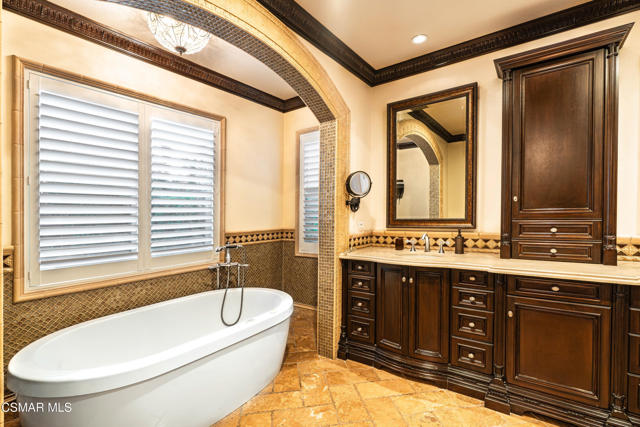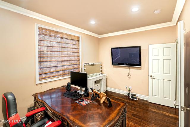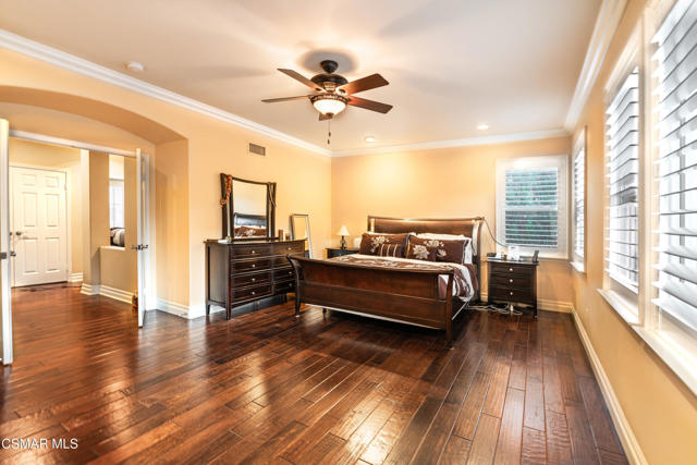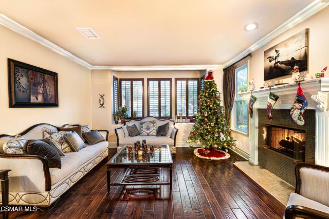 Fantastic Home in Wood Ranch located behind the Gates of the coveted Oaks Community. Spacious 5 Bed 4.5 Bath Estate with Hardwood and Travertine floors. Chef's Dream Kitchen features state of the art Appliances: Viking Stove, Sub-Zero Built-In Fridge, Bosch Dishwasher, Wine Fridge, Walk-In Pantry and Butler's Pantry. Living Room off of Kitchen with Fireplace and Built-In Cabinetry. Primary Suite features Luxurious Spa-Like Bathroom with Eucalyptus Steam Shower & Hydrotherapy Spa with Jets. All Bedroom Closets and Study feature Custom Built-In Cabinets. French Doors Open to Stunning Resort Style Backyard with Grand Pool and Spa with Water Slide and Waterfall. Pool controlled with Mobile App. Covered Patio with Recessed Lighting, Surround Sound, and Ceiling Fans. Built-In BBQ and Fire Pit. Four Car Garage with Custom Cabinets. Refinished Concrete. Recently Installed Tankless Water Heater. Luxury Neighborhood with 24 Hr Security and Maintained Landscaping is Located near the Best of Wood Ranch and Simi Valley. An Exceptional Offer!