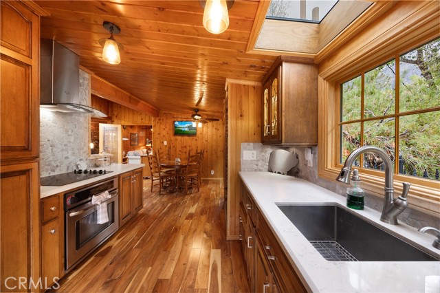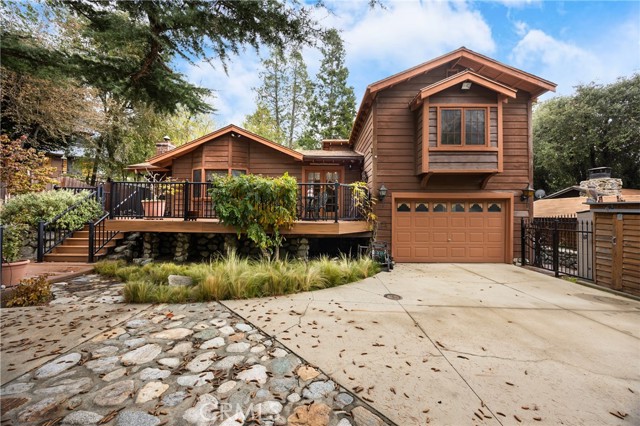 Charming Mount Baldy mountain retreat originally built in 1923, offering timeless character with extensive upgrades and expansions. This unique home features a two-story layout added in 1988, including upstairs bedrooms, bathroom, reading area, and garage. The inviting living room includes a cozy fireplace, while the remodeled kitchen (2015) boasts updated cabinetry, modern appliances, and finishes that complement the home’s rustic charm. Wood floors were added downstairs in 2020, with reinforced entry flooring for durability. Both bathrooms were updated in 2015, including a downstairs walk-in shower and refreshed upstairs bath. A spacious den was created by combining two original bedrooms, offering flexible living space. Enjoy outdoor living with newer front and back porches, rod iron gates and railings, block walls for added privacy, and a private back deck surrounded by mature trees. A sprinkler system was added in 2015, and a land exchange in 1996 expanded the property through the HOA. Located just 15 minutes from Rancho Cucamonga, Upland, and Claremont, this home feels worlds away in a peaceful mountain community known for hiking, biking, skiing, and snowboarding. A rare opportunity to own a thoughtfully updated home in the heart of Mount Baldy.