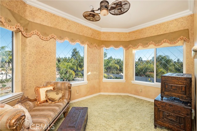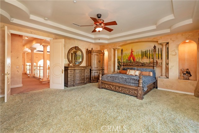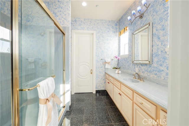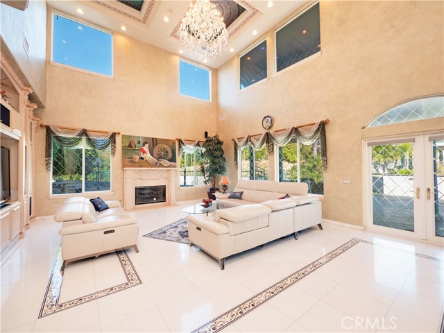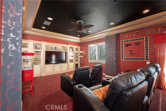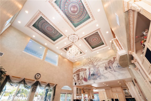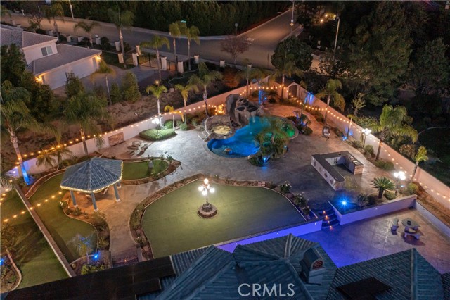 The original owners raised a large family here and loved to host events of all kinds—and it shows in every thoughtful detail of this grand estate. From intimate family dinners to grand celebrations, this home was designed to create lasting memories and exceptional entertainment. Guests will be captivated from the moment they arrive. Walking past the welcoming sculpture, they'll enter through double beveled glass doors into a dramatic two-story foyer that takes center stage. Elegant mother-of-pearl inlay adorns the marble flooring, while rope lighting illuminates the soaring space. Surrounding this stunning foyer, discover a music alcove, two versatile bedrooms, a gracious living room, a formal dining room, and a bonus room perfect as library, wine cellar, home office, or bar tailored to your lifestyle. The second floor offers five spacious bedrooms, each thoughtfully positioned for privacy and a designed theater room —that can convert easily to an additional bedroom. The crowning jewel is the opulent primary suite; complete with a private balcony, cozy fireplace, reading nook, luxurious 14k gold bathroom fixtures, makeup vanity, dual sinks, and a walk-in closet with built-in dressers. The chef's kitchen is where this home truly shines for entertaining. Featuring two stoves with 10 total burners, stainless steel appliances, granite countertops, extensive cabinetry, a walk-in pantry, and a massive island. It opens to a second, casual dining area and family room—ideal for everyday gatherings. A large butler's pantry with a separate entrance makes catered events seamless as it leads out to the resort-like yard. With its outdoor kitchen area, complete with generous counter space, grill, refrigerator, and sink; lighted tennis/basketball court that allows for play any time of day or night; resort-style pool featuring a cascading waterfall, rock slide, and integrated hot tub; multiple covered patios and thoughtful lighting placed throughout every element truly feels like is has been carefully designed for hosting memorable events or simply relaxing with family. Perched above neighboring homes, the property offers privacy and stunning views of mountains, and city lights; and also includes dual 2-car garages with ample storage space, extra-exterior parking for large gatherings. This is more than a house—it's a lifestyle designed for connection, celebration, and making memories that last a lifetime.