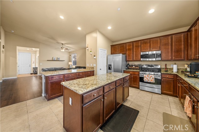 This charming home in desirable southwest Bakersfield offers easy access to shopping, schools, and general services. Inside, the spacious living room flows into a kitchen with a large granite countertops, island, abundant storage, beautiful wood cabinetry, and stainless steel appliances, all complemented by tile flooring. Recent upgrades include luxury vinyl plank flooring in the living room and newer carpet in several bedrooms. The split-wing layout provides privacy, with one bedroom perfect as an office or guest room. The seller recently installed a brand-new air conditioning unit, making the home more energy-efficient. The backyard features a spacious pad ideal for outdoor gatherings and is surrounded by extra cement on all sides, offering low-maintenance convenience. The home is ideal for anyone seeking comfort and style in a great location. Call today to schedule a private showing and see all this home has to offer!