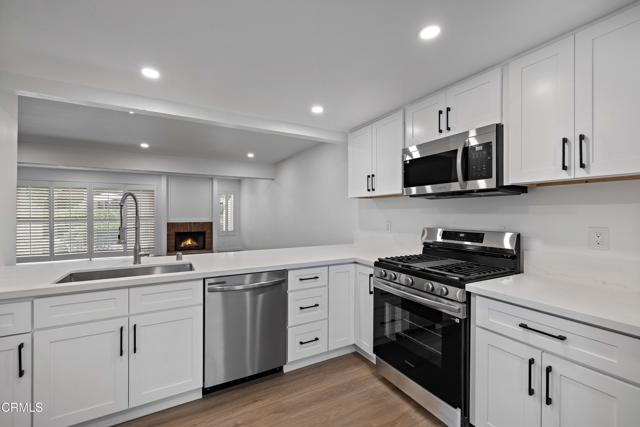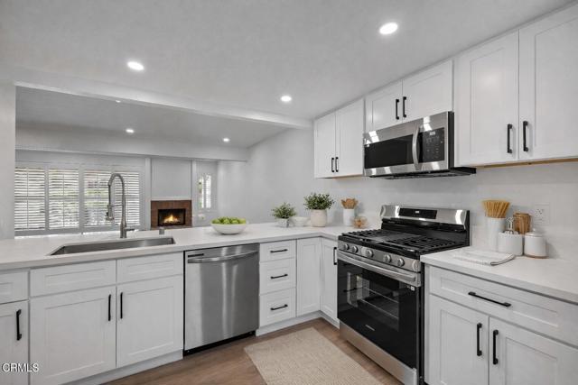 Welcome to this fully renovated 2-bedroom, 3-bathroom condo in the heart of Woodland Hills, offering modern design, quality craftsmanship, and an unbeatable location close to everything.No detail was overlooked in this top-to-bottom transformation. The brand-new kitchen features solid wood cabinetry, quartz countertops, a stainless steel undermount sink, chef-style faucet, and a full suite of stainless steel appliances--perfect for everyday living and entertaining alike. Recessed lighting replaces outdated fixtures, creating a bright and contemporary feel throughout.The home boasts new waterproof LVP flooring with wide 48' x 7' planks, fresh white paint, all-new interior doors, trim, hardware, outlets, and thoughtfully added recessed lighting across both levels. Large new windows and exterior doors enhance natural light and energy efficiency.Upstairs, both bathrooms have been completely rebuilt with spa-inspired finishes, including solid slab stone shower walls for a seamless, high-end look. The primary suite offers a custom, wall-to-wall closet system, a new double vanity with quartz counters, a walk-in shower, and a newly framed entry with added privacy. A convenient downstairs half bath and an upgraded upstairs laundry area add everyday functionality.Ideally located near shopping, dining, entertainment, and major commuter routes, this move-in-ready condo delivers modern comfort, style, and convenience in one of the Valley's most desirable neighborhoods.A rare turnkey opportunity--don't miss it.