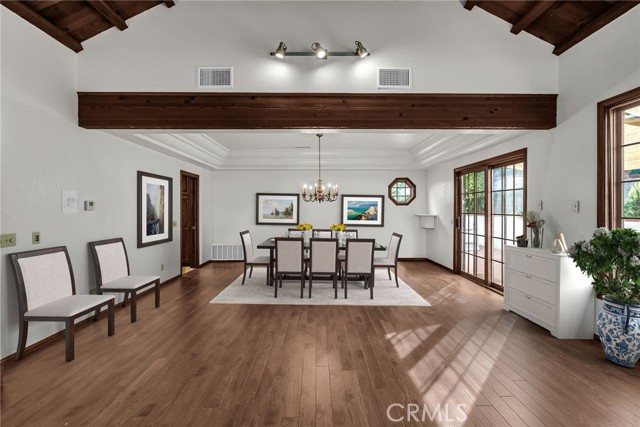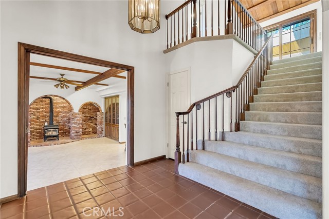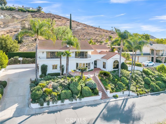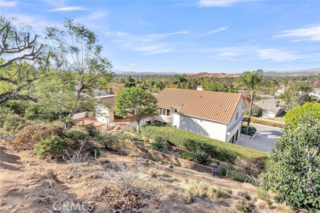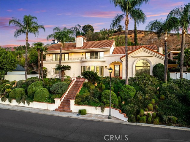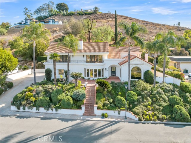 VICTORIA WOODS SOUTH- KNOB HILL ESTATES- stunning custom built Santa Barbara style Spanish Colonial home nestled on this elevated hillside site: Commanding views of Palm Tree lined Victoria Avenue, city lights, Mount Rubidoux, the downtown Riverside skyline and the snow capped mountains beyond. Timeless style and character abound in this thoughtfully configured home; Massive formal living room with dramatic wood beamed ceiling and large Palladian window and wood-burning fireplace; Generous formal dining room with coved ceiling; Expansive island kitchen with walk-in pantry, breakfast bar and all built-in appliances opens to the spacious family room with large circular walk-a-bay window and Inglenook Fireplace with wood stove; Ascend the wide stairs to the upper level bedrooms separated by the upper landing; Two family bedrooms each with a private ensuite bath are located at rear south end of the upper level; The primary suite enjoys the seclusion of the north front of the second floor where views are enjoyed from the adjoining terrace; Additional primary suite amenities include the luxurious bath and walk-in closet with direct access to the upper level laundry room; Also sharing the upper floor but accessible from the back stairs is the guest suite or bonus room with kitchenette, private bath and access to the laundry room; Oversized, attached three-car side loaded garage and large driveway parking area; The grounds are beautifully landscaped with mature shade and multiple varieties fruit trees and plantings amid multiple patios on varying levels affording ample outdoor recreation areas. Built-in swim spa and terraced orchard complete the rear portions of this secluded site; Fully integrated power solar shades protect the front windows of the residence from direct afternoon sun aiding in keeping the interior climate comfortable; Close to all schools, Victoria Club and just a short distance from the Riverside, Plaza, UCR, RCC and the 91 freeway! Offered for the first time in 30 years!
