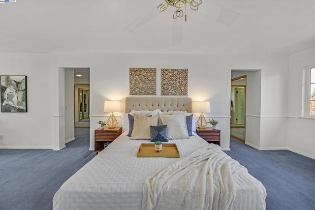 Perched on a large, unique, corner lot this 4 bedroom, 2.5 bath home has all the classic charm. The downstairs bedroom offers private space perfect for an office while the primary bedroom lounge will easily become one of your favorite areas to ease into your mornings or to unwind from the day. A separate living and family room provides functionality for everyday life and versatility for entertaining. The huge lot offers endless potential. Even with a large swimming pool there is still room for gardening, RV Parking, and even a potential ADU site. All of this located near Bishop Ranch's shopping and restaurants, Central Park and the Regional Preserve. Experience the ideal blend of urban convenience and the beauty of nature, all within a community that feels like home.