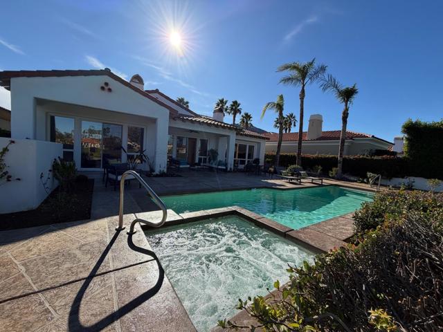 THE CITRUS: Situated on a quiet and private stretch of Citrus, where the street turns away from 52nd Avenue, this home enjoys a peaceful setting on the 12th fairway of The Citrus Club. A large, welcoming courtyard with southern exposure creates an impressive and private arrival.Inside, a dramatic entry opens to a spacious great room, ideal for both everyday living and entertaining. The flexible floor plan includes a media room/den, family room, office, and formal dining room. The chef's kitchen features a long granite breakfast bar and overlooks the great room, informal dining area, and outdoor living space.The home offers three en-suite bedrooms, with the primary suite and guest suites thoughtfully positioned on opposite sides of the residence. A generous bonus room, currently used as a media room, provides excellent flexibility for a den, second office, or additional living space.Outdoors, the pool and spa are set well away from the home, allowing excellent year-round sun exposure and ample space for entertaining. The backyard captures stunning north-facing views of the Little San Bernardino Mountains.Recent upgrades include new HVAC units (2022), a new pool heater, and a new water heater. With abundant storage throughout, this property is ideal as a full-time residence or desert retreat. A terrific opportunity in a prime Citrus Club location.