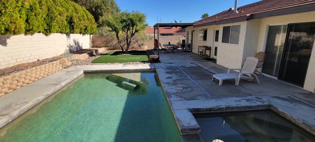 Nestled in the beautiful community of Mission Lakes Country Club, One of the few homes with its own pool/spa in a large and private backyard. 3 bedroom (plus bonus room), 2 bath, 2 car attached garage and beautiful livingroom fireplace for those chilly days and nights.Upgrades include: In 2025 - exterior paint, replaced septic and leech field, new decomposed granite in front yard, new toilets, new faucets and roof repaired. 2024 - new dishwasher and cooktop. 2023 - new swamp cooler. 2022 - new HVAC. 2020 - new tankless water heater and all new LED lighting, Pool/spa built in 2006 and are set up for salt or chlorine. Beautiful clubhouse with bar and San Jacinto restaurant (public), The Sand Wedge cafe for lunch/snacks, large pool, spa, fitness center, golf on the award winning 18 hole course designed by master architect Ted Robinson (free golf for up to 2 homeowners on title) , tennis, pickleball, pro shop, extensive activities and banquet/meeting rooms. Monthly HOA of $465. Sellers are motivated and it is priced to sell! You don't want to miss out on this beauty!