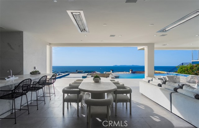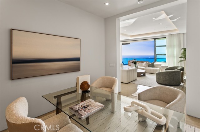 Perched within the exclusive, guard-gated enclave of The Strand at Headlands, 7 Pacific Waves Circle presents a rare opportunity to own a striking coastal retreat in the lower Strand, defined by modern architecture, privacy, and commanding ocean views. Thoughtfully designed to capture the beauty of Dana Point’s coastline, the residence offers a seamless blend of modern sophistication and effortless indoor–outdoor living. From the moment you enter, sweeping Pacific and Catalina Island vistas set the tone. Expansive walls of glass frame the main living spaces, allowing natural light and ocean breezes to pour throughout the home. The open-concept main level is designed for both elevated entertaining and everyday comfort, anchored by a showpiece kitchen featuring premium appliances, a statement island, and refined custom finishes. Adjacent living and dining areas flow seamlessly to generous outdoor terraces, creating an ideal setting for gatherings at any scale. The upper level is dedicated to tranquility, with a luxurious primary suite that enjoys panoramic ocean views, a private terrace, spa-inspired bath, and an oversized walk-in closet. Additional guest suites are thoughtfully positioned throughout the home to provide privacy and comfort for family and visitors alike. The lower level is a true entertainer’s retreat, offering a cinematic media lounge, secondary living space, gym with sauna and steam room, highlighted by effortless access to the resort-style backyard. Outdoors, the infinity-edge pool with sunken seating area, spa, fire features, and multiple lounging areas create an environment that feels both intimate and grand, perfect for entertaining or unwinding against the backdrop of the Pacific. Completing the residence are premium amenities including an elevator, smart home technology, and a spacious multi-car garage. Residents of The Strand enjoy exclusive access to the beach, coastal trails, and resort-style amenities, all just moments from the charm, dining, and harbor of Dana Point. A rare blend of modern architecture, prime guard-gated location, and California beach lifestyle, 7 Pacific Waves Circle represents coastal living at its highest level.