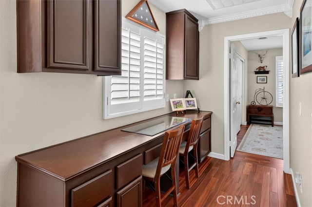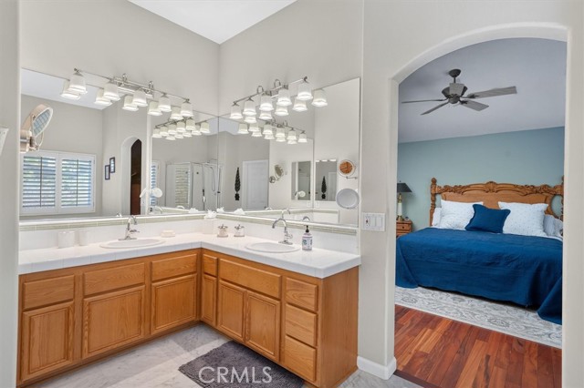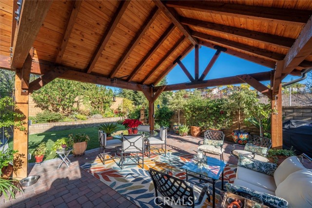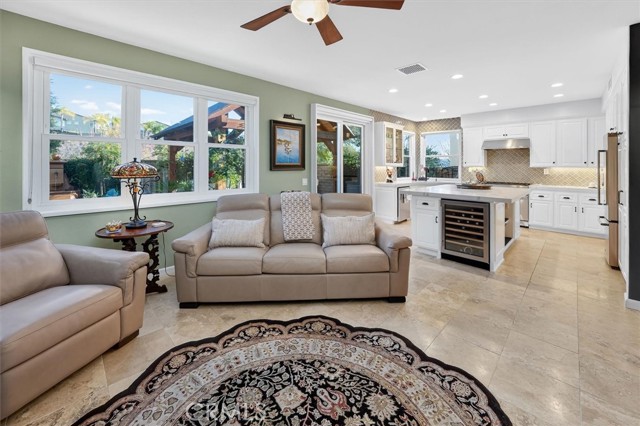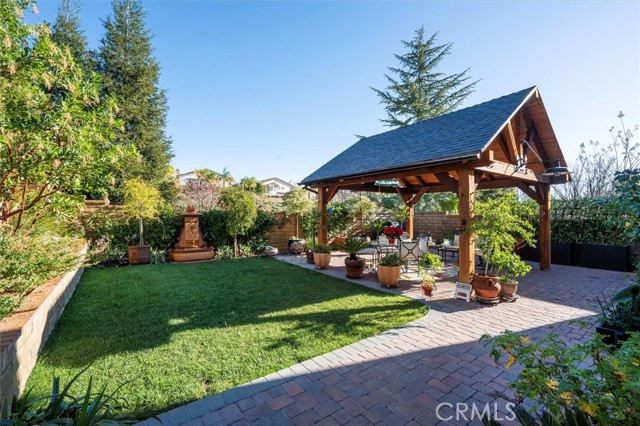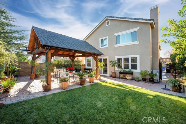 Welcome to this pristine, move-in-ready home in the highly sought-after Northlake community of Castaic, where pride of ownership shines throughout. Offering 4 bedrooms and 3 bathrooms, including a full bedroom and bathroom conveniently located downstairs, this home checks every box. Step inside to the formal living and dining rooms, highlighted by soaring ceilings, box-molded framed windows with shutters, and elegant travertine flooring throughout the downstairs. The incredible, remodeled kitchen is a true showstopper, featuring an extra-large center island with built-in wine refrigerator, pull-out storage on both sides, double-edged quartz countertops, and a Thermador stove and oven with a 36” professional-grade gas range. Stainless steel appliances and a stunning Italian tile backsplash that extends to the ceiling complete this chef’s dream kitchen, which opens seamlessly to the family room. The family room offers a cozy fireplace, built-in TV nook (TV included!), and newer Milgard windows with updated window shades in both the family room and kitchen. Upstairs, you’ll find Brazilian Koa wood flooring, crown molding, and a loft overlooking the living room with shutters. All three additional bedrooms include ceiling fans. The primary suite enjoys a peaceful backyard view and features a spacious primary bathroom with enhanced lighting, marble flooring, tile countertops, dual sinks with newer faucets, and a large walk-in closet. The backyard is a true retreat, showcasing a permitted pavilion with gutters and ground drains, pavers, a beautiful fountain, and a lush grassy yard complete with sprinklers, mature plants, flowers, and trees—perfect for relaxing or entertaining. Additional upgrades include a newer air-conditioner and thermostats (upstairs and downstairs), newer heater, whole-house fan, tankless water heater, entire home re-plumbed, re-circulating hot water pump, and whole-house water filtration system—making this home both energy-efficient and thoughtfully upgraded. Enjoy Northlake HOA amenities including a pool, spa, and clubhouse, all while living in a home where there is truly nothing to do but move in and enjoy.