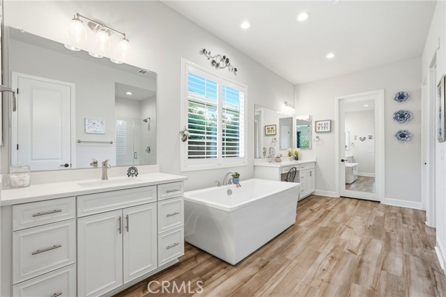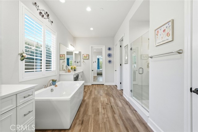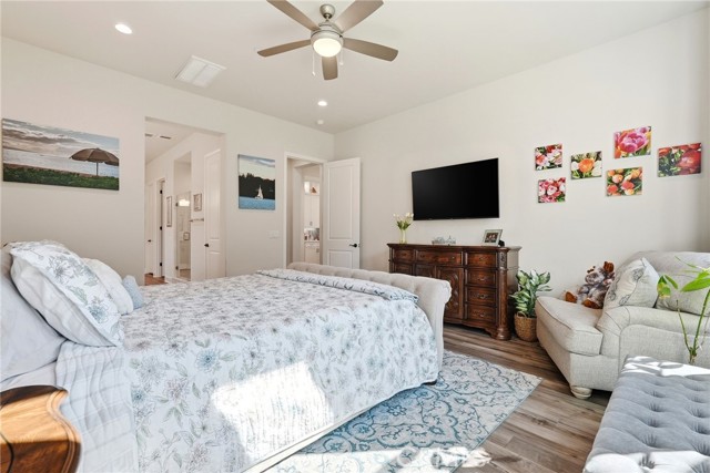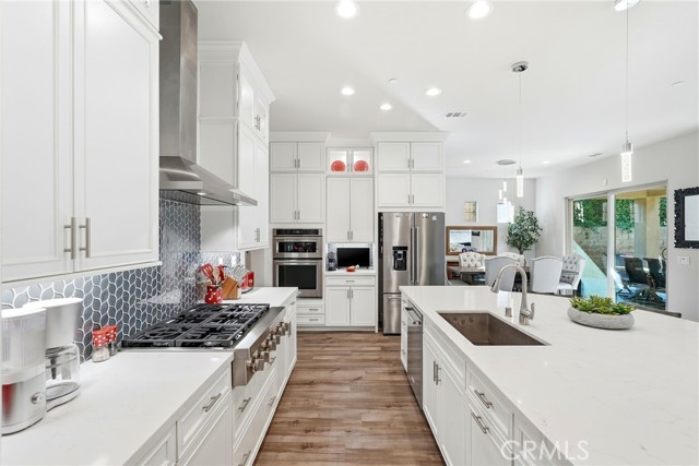 Proud to present this stunning newer construction 5-bedroom, 5.5-bathroom residence situated in a highly sought-after West Hills neighborhood. This luxurious home, boasting over 4000 square feet of living space, features an open floor plan and is located on a serene cul-de-sac. The chef's kitchen is a culinary dream, equipped with a spacious center island, wet bar, wine refrigerator, 6-burner stainless steel stove, and high-end stainless steel appliances. The primary bedroom, conveniently located on the first floor, offers a spa-like en-suite bathroom with dual sinks, dual closets, a soaking tub, and large step-in shower. The cozy living room off the kitchen has an upgraded built in fireplace. Head upstairs where you will find a spacious loft with panoramic views of the surrounding mountains, four generously sized bedrooms each with a walk-in closet & its own private full bathroom. Also conveniently located upstairs is the laundry room with utility sink. Additional features include a spacious 3-car garage with ample storage space and a 240-volt hookup for electric vehicles. The upgraded solar panels are owned, not leased, helping to keep electricity bills at an all-time low. The expansive backyard features a covered patio. large grassy area and dog run. This property is located within the award-winning El Camino, Hale, and Pomelo school district, and the neighborhood includes a roaming security guard after hours.