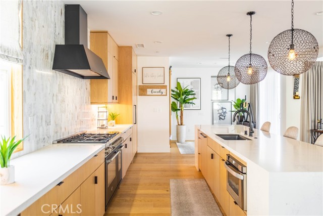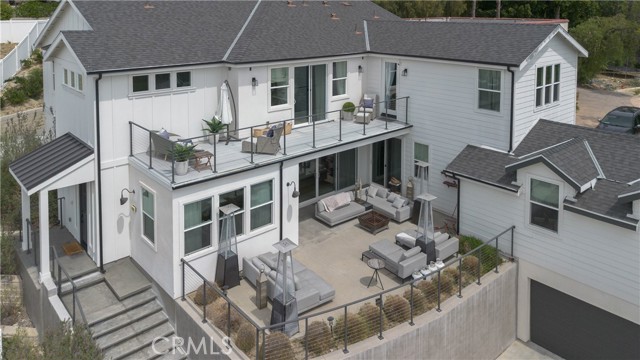 Built in 2021, this beautifully upgraded Modern Farmhouse is located in a GATED hillside community on a quiet cul-de-sac, offering privacy, scenic views, and a thoughtfully designed open-concept floor plan. Featuring 4 bedrooms plus a main floor office (or optional 5th bedroom) and 4 full bathrooms, this home blends modern elegance with everyday comfort. Rich hardwood flooring, designer chandeliers, and custom wainscoting create warmth and sophistication throughout. The chef’s kitchen is the centerpiece of the home, showcasing a massive quartz island, modern wood cabinetry, black appliances, and statement accent lighting. It flows seamlessly into the family room and opens to a spacious entertaining patio with hillside views — ideal for indoor-outdoor California living. The main level includes a flexible office/bedroom and an additional bedroom with full bath, perfect for guests or multi-generational living. Upstairs you’ll find: • A large bonus room with breathtaking views and private deck • A dedicated luxury movie theater room designed for immersive cinematic experiences — perfect for private screenings, game nights, or hosting unforgettable gatherings • Two secondary ensuite bedrooms • Laundry room with an expansive linen closet • Elongated driveway • Large front and back yard The impressive primary suite offers dual vanities, a soaking tub, oversized walk-in shower, TWO PRIMARY WALK-IN CLOSETS, and direct access to a private viewing deck to enjoy peaceful hilltop sunsets. Built to the latest building codes. A rare opportunity to own a newer construction home in an exclusive gated hillside setting — where luxury, comfort, and lifestyle come together.