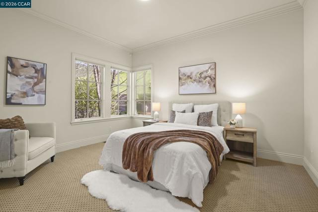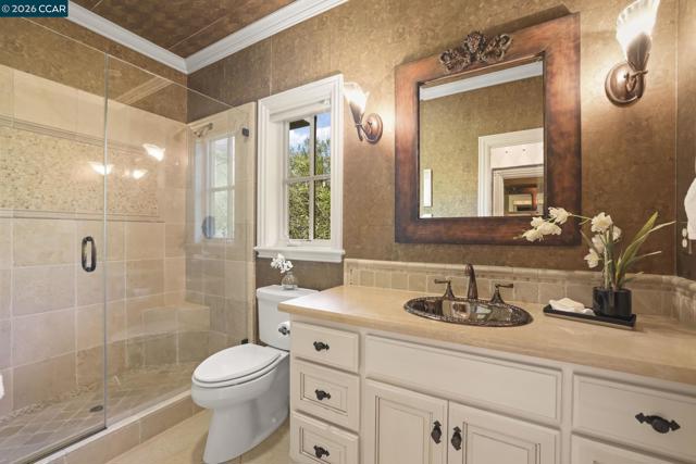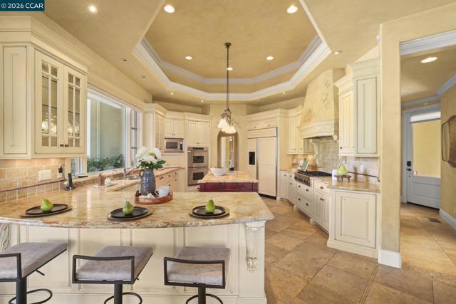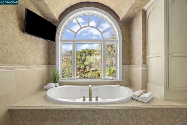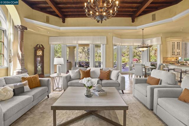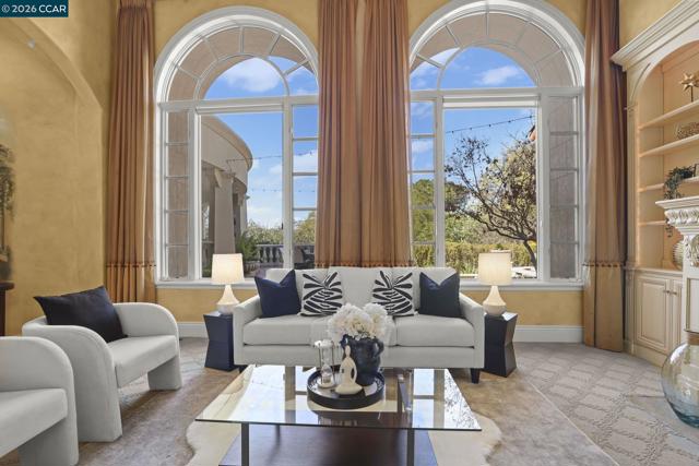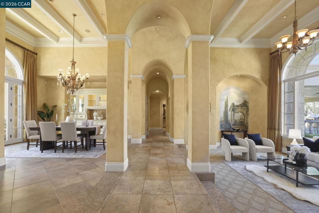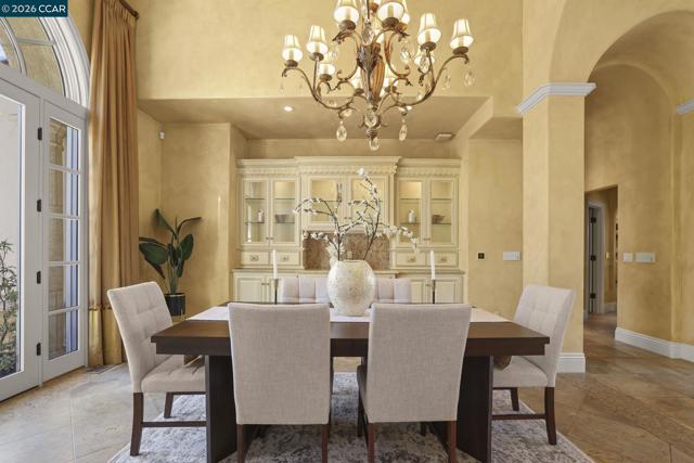 A rare single-level Tuscan-inspired home in the gated Diablo Ranch Estates community, set on over one-third acre at the base of Mt. Diablo. This 4-bed, 3.5-bath residence offers approx. 4,394 sq ft of refined living space with 16-ft ceilings, abundant natural light, and an open layout designed for easy indoor-outdoor living. The chef’s kitchen features Dacor appliances, a built-in GE Monogram refrigerator, entertainer’s bar with wine storage, and a walk-in pantry. The primary suite includes two walk-in closets and a spacious en-suite bath with dual vanities. There's a spacious guest room with en suite bath room and walk in closet. Additional highlights include two bedrooms joined by a Jack n Jill bathroom, a dedicated office with custom cabinetry, formal living and dining rooms, Pozzi windows, and two central HVAC systems. The resort-style backyard offers a jetted Pebble Tec pool and spa, built-in BBQ, sun shades, and panoramic mountain views. A 3-car garage includes a finished, heated third bay ideal for a gym. Living here is like being on vacation 365 days a year! It's a beautiful Life at the base of majestic Mt. Diablo! Minutes to downtown Danville, top SRVUSD schools, and convenient freeway access. Come home to Diablo Ranch Estates!