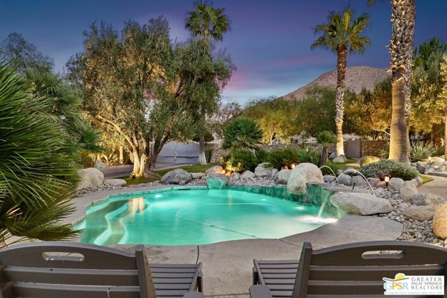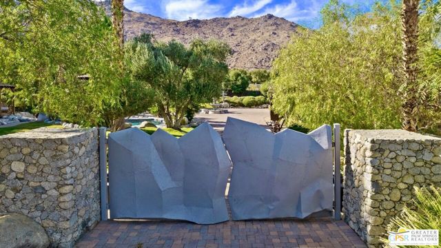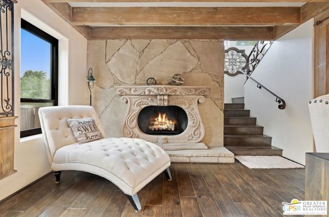 Discover the pinnacle of desert sophistication in this PRIVATE OASIS nestled within the EXCLUSIVE SNOW CREEK DESERT COMMUNITY. Positioned at the scenic north base of Mt. San Jacinto, this newly renovated estate offers a rare intersection of raw natural beauty and refined luxury, benefiting from a COOLER MICROCLIMATE and the enchanting rarity of OCCASIONAL WINTER SNOW. The interior is a masterclass in design, boasting BEAMED CEILINGS, HICKORY HARDWOOD FLOORS, and CUSTOM LIGHTING throughout. A spacious living room with a CHARMING FIREPLACE flows effortlessly into a formal dining area anchored by a SECOND FIREPLACE, while the CHEF'S KITCHEN serves as a culinary atelier with HIGH-END STAINLESS APPLIANCES, GRANITE COUNTERS, and a STYLISH WATERFALL ISLAND. The floor plan offers ultimate flexibility, including a main-level guest suite and an upstairs PRIMARY SUITE REFUGE complete with a PRIVATE FIREPLACE, SPA-LIKE ENSUITE, and an expansive retreat area. Outside, the grounds are engineered for the quintessential California lifestyle, featuring WRAPAROUND AND ROOFTOP DECKS for world-class stargazing, a SALTWATER POOL AND SPA, and a PRIVATE GUEST HOUSE. Secured by an ELECTRIC GATE and featuring HURRICANE SHUTTERS, CENTRAL AC, and a DETACHED UTILITY GARAGE, this rare gem offers an unparalleled sanctuary just minutes from the vibrant energy of DOWNTOWN PALM SPRINGS.