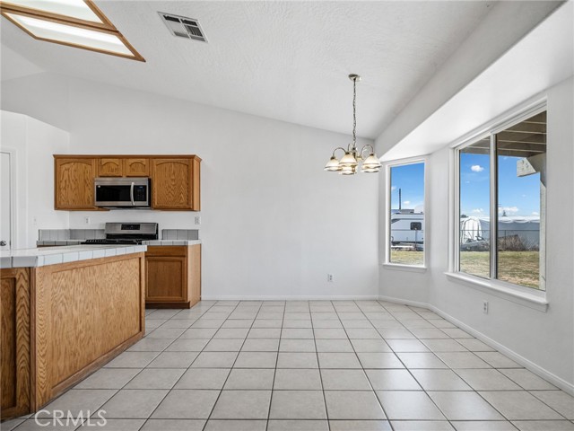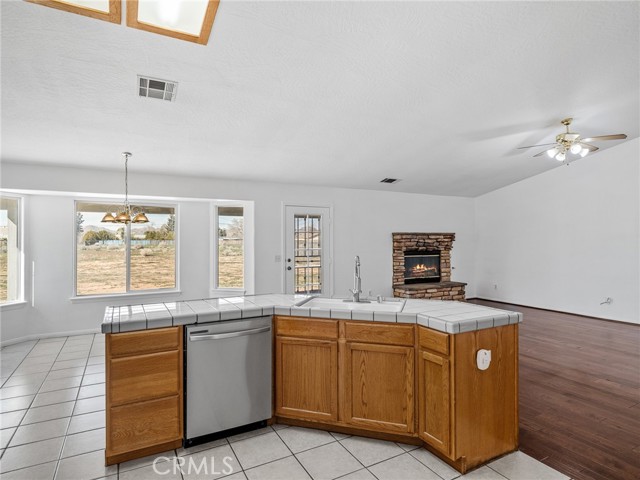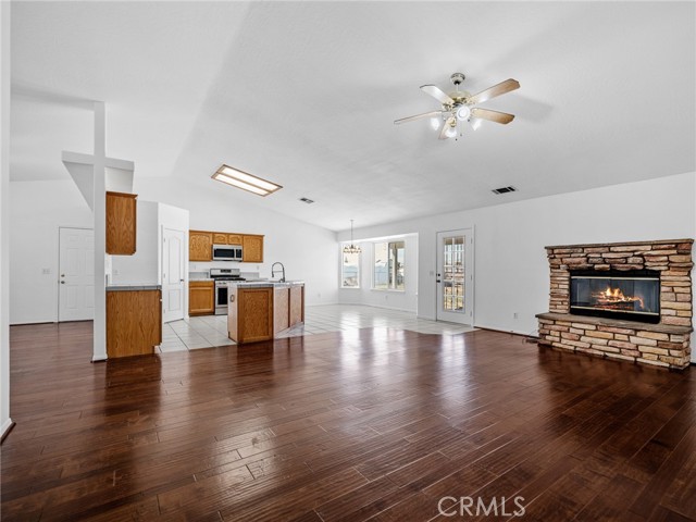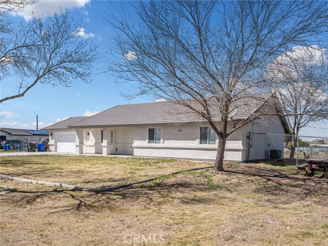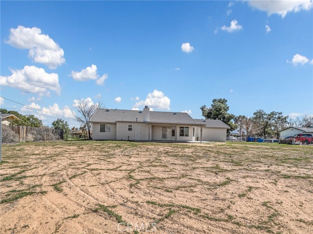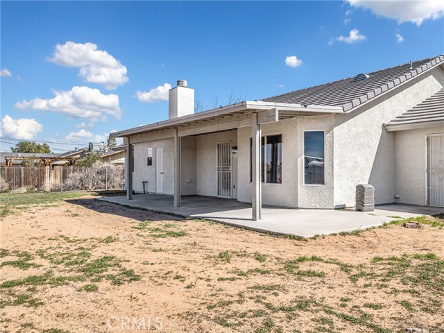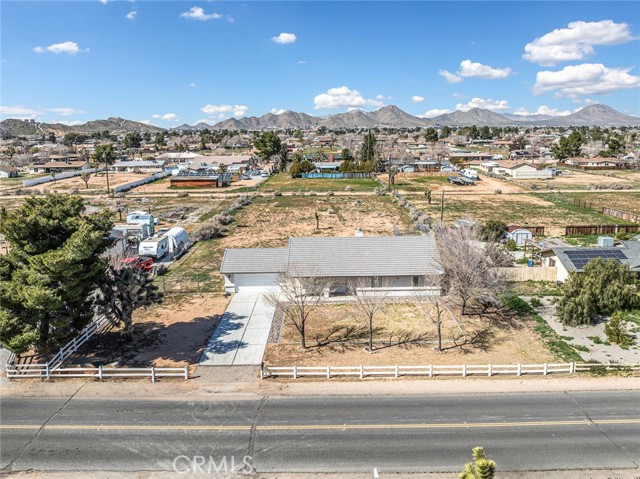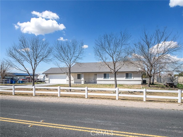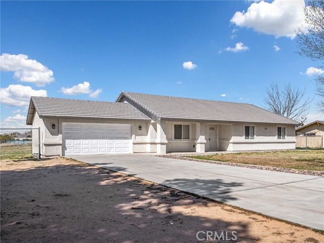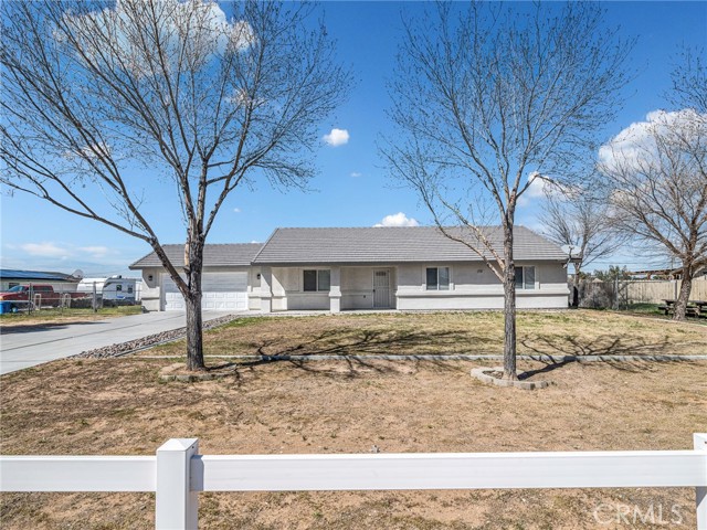 Welcome to this beautifully updated home in the desirable Apple Valley Ranchos area, offering the perfect blend of rural living with modern comfort. Built in 2005 and situated on a fully fenced flat 1-acre lot, this move-in ready property provides space, privacy, and versatility. Recently professionally painted inside and out, the home features laminate flooring and tile throughout — no carpeting. The spacious living room offers a cozy fireplace and ceiling fans throughout the home for year-round comfort. The kitchen includes a new stainless steel dishwasher and microwave, making it ready for everyday living and entertaining. The septic system has recently been pumped and serviced, offering added peace of mind for the new owner. This functional floor plan offers 3 bedrooms plus a den (ideal for a home office or potential 4th bedroom) and 2 full baths. Step outside to enjoy the covered back patio, perfect for relaxing or entertaining. The expansive lot includes a large front yard with white vinyl fencing, lawn and decorative river rock, RV access, room for all your toys, and a dog kennel. Tile roof and ample driveway parking complete the package. Located near Rancho Hills High School and described as rural living by Google, this property offers space to breathe while still being conveniently located. Just move right in and enjoy High Desert living at its best!