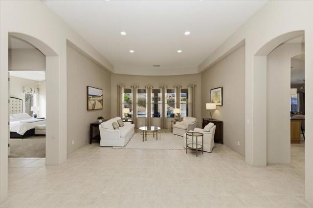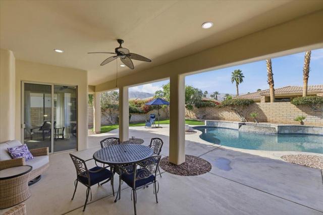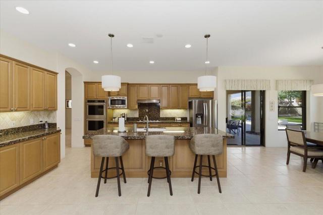 The Great Entertainer! Largest plan at La Terraza Palacio, 4 bedrooms each ensuite,gourmet kitchen with center island open to family room enabling chef to participate in social entertaining. A library for the literary buff, porcelain tile floors in main living areas. Wonderful custom walk-in closets, formal dining and seamless indoor-outdoor entertaining. design. Very private cul de sac location with salt water pool & spa artfully framed in stone coping. The central location to shopping, restaurants and medical facilities creates time saving convenience. Pride of ownership, meticulous inside and out value is in location, size, condition and amenities. Oh yes, 3 car garage, too!