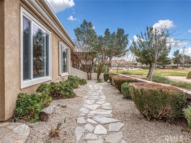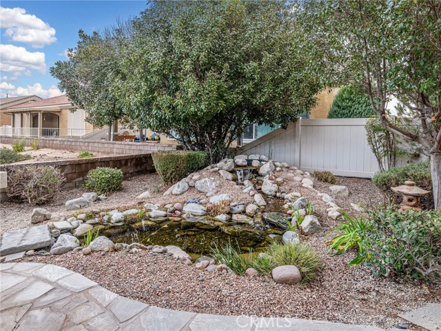 Welcome to Jess Ranch, a premier 55+ community in beautiful Apple Valley! Step into paradise with this spacious 1870 sq ft split-floorplan home designed for comfort, privacy and easy living. From the moment you enter the inviting foyer, you'll appreciate the pride of ownership throughout this well-maintained 2 bedroom, 2 bath, office or 3rd bedroom residence. The open living and dining areas provide plenty of space for gathering, while the cozy fireplace creates the perfect setting for relaxing evenings on the chilly winter night. The large kitchen offers plenty of cabinetry and workspace, ideal for preparing meals or entertaining guests. Just as you enter from the garage, you'll find a convenient laundry room complete with washer and dryer for added functionality, a sink and plenty of cabinetry for storage. The private primary suite features a generous walk-in closet, a large free standing tub, a separate shower - your own peaceful retreat at the end of the day. On the opposite side of the home, two additional rooms, 1 bedroom and 1 office or extra bedroom with built in cabinets and desk offering flexibility for guests or your hobbies. Then step outside to your backyard retreat, complete with a tranquil koi pond and soothing cascading waterfall. Surrounded by lush plants and shrubs, it's the perfect spot to enjoy your morning coffee, afternoon snack or dinner under the sky - and just in time to take in a stunning High Desert sunset. You can even take the afternoon and go do some shopping as you will see plenty of choices to choose from or maybe even a movie all located at the entrance of Jess Ranch.This home offers more than just space --- it offers a lifestyle of comfort and tranquility in beautiful Apple Valley.