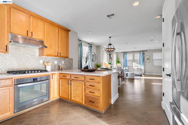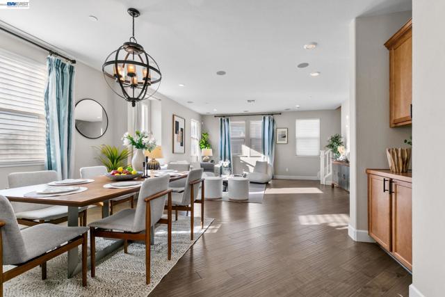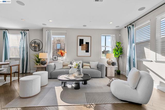 One of the most desirable and spacious floor plans in the entire community! This former model home offers approximately 2,100 sq ft of beautifully designed living space, along with nearly $100K in premium location value and upgrades. The entry level includes a private bedroom with its own full bathperfect for guests, multigenerational living, or a dedicated home office. On the main floor, the open-concept layout centers around a stylish gourmet kitchen appointed with quartz countertops, stainless steel appliances, and a modern semi-island. The kitchen flows effortlessly into the dining and living areas, creating an ideal environment for both everyday comfort and entertaining. Upstairs, the primary suite offers a peaceful retreat with a spa-inspired bathroom, dual vanities, and an oversized walk-in closet. The location is truly exceptional. Youre within walking distance to BART, neighborhood parks, golf courses, Mercado Park, and the newly developed Market Park Plaza with Safeway, CVS, and more. Plus, youre just minutes from Costco, Ranch 99, H-Mart, and major commuter routes including 101, 880, and 680, making travel throughout the Bay Area incredibly convenient. Opportunities like this are raredont miss your chance to make this impressive home yours!