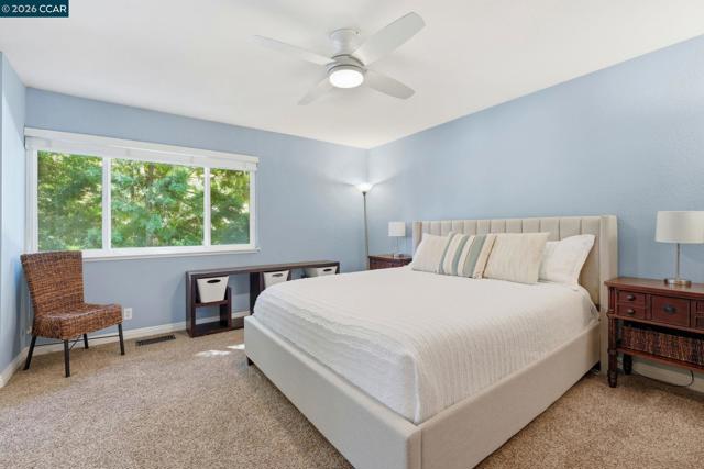 You’ve got to see this bright, airy, and thoughtfully designed condo. Admire the manicured grounds, they’re a delight walking to and from the front door. A new refrigerator, stove/oven, and dishwasher were purchased in February of this year, and in 2025 a new hot water heater, LG washer and dryer, and attic ladder were all installed as well. The luxury vinyl floors and carpet have both been carefully maintained. The back patio is perfect for eating dinner on one of those long summers' evenings, and when the sun goes down and the air cools off, imagine cozying up by the beautiful fireplace. The location is superb, within around a quarter mile you will find Contra Costa Cinema, Nob Hill Foods, CVS, Starbucks, other restaurants, a gym, and a brand-new Tesla Supercharger. You don’t want to miss out on this lovely home!