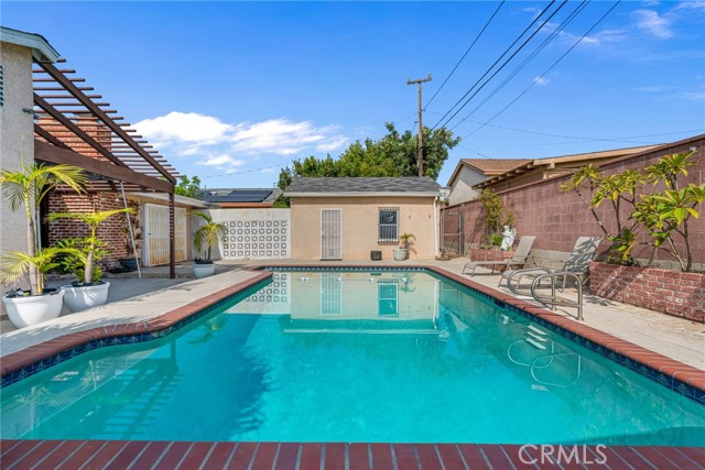 Welcome to this beautifully updated single-story Pool home in the desirable Century Heights neighborhood, set on a charming tree-lined street! This light-filled home features an open floor plan with real hardwood floors, recessed lighting, and an abundance of natural light throughout. Both the formal living room and the separate family room feature fireplaces, perfect for cozy, chilly nights. Plantation shutters in the living room and kitchen, add both style and function, the home also boasts updated triple-pane windows, enhancing both energy efficiency and soundproofing for a peaceful living environment. The stunning, upgraded kitchen offers marble countertops, quality cabinetry with soft-close drawers and doors, a new stove/oven, stainless steel appliances, and a gorgeous center island with extra seating, perfect for everyday living and entertaining. The spacious layout easily accommodates an oversized dining table, and the additional back counter provides the ideal buffet space for hosting gatherings. The home offers four generously sized bedrooms, each with ceiling fans, and two beautifully updated bathrooms, including a modern walk-in shower. The oversized primary bedroom is a true retreat, featuring space for a cozy seating area, along with an expansive cedar walk-in closet, and direct access to the backyard, perfect for morning coffee while enjoying the view of the heated pool. An added feature is the interior laundry room for added convenience. Step outside to your private backyard oasis featuring a large, heated pool ideal for enjoying sunny days and relaxing summer evenings with family and friends. Additional highlights include solar for energy efficiency and a Detached two-car garage with ADU potential plus covered carport for extra parking. Ideally located just minutes from world-class entertainment venues such as SoFi Stadium, Intuit Dome, and Kia Forum, this home offers both comfort and convenience in a vibrant, growing community.