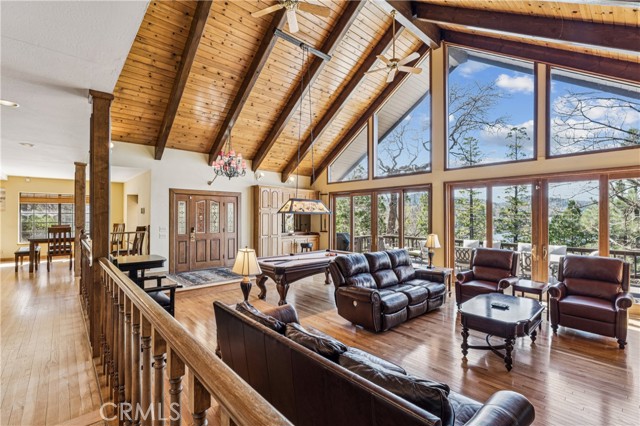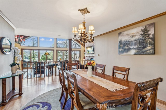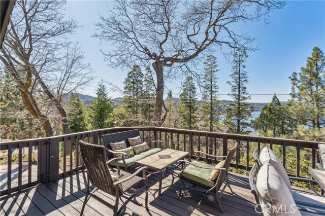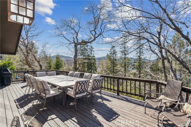 Welcome to this exceptional lakeview residence located in a gated first-tier neighborhood in Lake Arrowhead. This home offers an elevated mountain-lake lifestyle with privacy, comfort, and beautiful views. The inviting living areas feature a huge fireplace with built-in cabinets and a bar area, making it the perfect space for relaxing or entertaining. The main living space is filled with natural light and opens directly to a large party deck—ideal for outdoor gatherings while enjoying scenic lake views. The spacious kitchen features a generous breakfast bar and is conveniently located adjacent to both formal and informal dining areas, creating an ideal layout for entertaining and everyday living. The home features 4 bedrooms and 3.5 bathrooms, including a spacious primary suite on the main level with a large custom bath showcasing generous space and thoughtful finishes. Two additional bedrooms are also located on the main level, providing excellent flexibility for family, guests, or a home office. In addition, the home includes a private guest suite with its own living area featuring a fireplace, a spacious bedroom, and a private bath—offering comfort and privacy for visitors. Enjoy the convenience of walking to the lake, dock, and sandy beach area for easy access to lakeside recreation. The dock is available for purchase separately. Additional amenities include an oversized two-car garage, RV parking, and ample additional parking for guests. The home is also equipped with two air conditioning systems and a backup generator for year-round comfort and reliability. This home has been a successful short-term rental (STR) and can be continued as an income-producing property by new owners. Dock NSM 2, Slip 21 is available for extra $$$.
