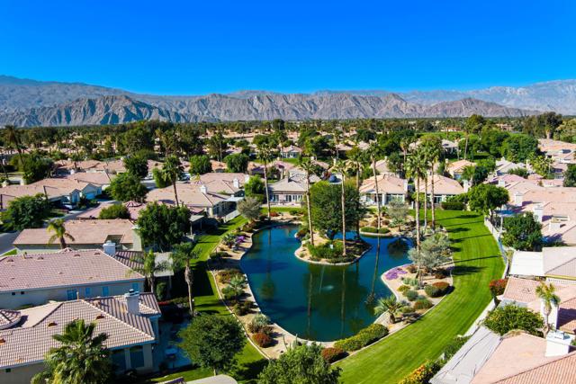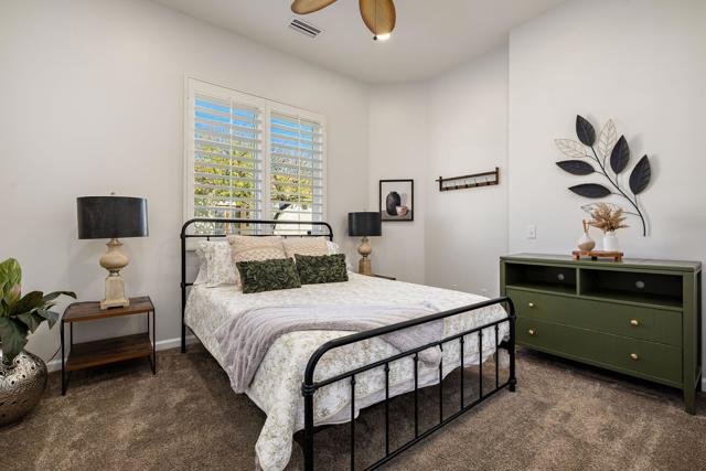 This beautiful 3-bedroom, 3-bath home is in the coveted Indian Palms Country club. 2nd bedroom had a bonus room that can be used for additional sleeping, study or office. Enjoy the expansive open floor plan that effortlessly flows from indoors to the stunning outdoors, where your private pool and spa await. For your convenience electric shades cover the patio. This overlooks serene views of the green belt, pond, and creeks - perfect for those tranquil evenings or entertaining guests. A 27- hole public golf course and clubhouse are in the development. Included with the HOA's is membership to the Lifestyle Center giving you access to a gym, pickleball, tennis, large community pool, and bocce ball. Whether looking for a permanent home, a seasonal getaway or a rental investment this is an ideal home. Additionally, there are 2 AC units, one was replaced in the spring of 2024 and one the summer of 2024. Indio is in the Imperial Irrigation jurisdiction but for added savings this home has solar. This is a Must See.