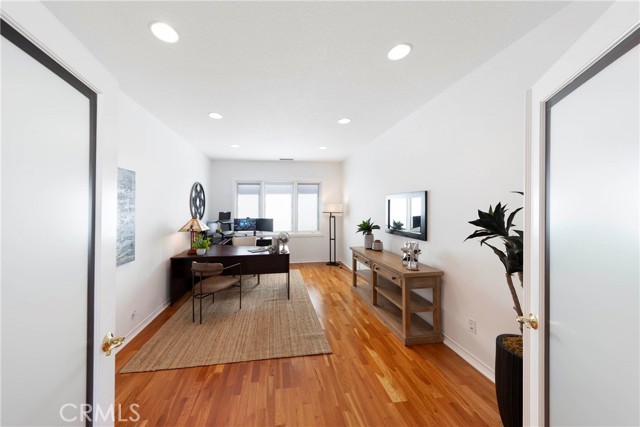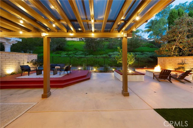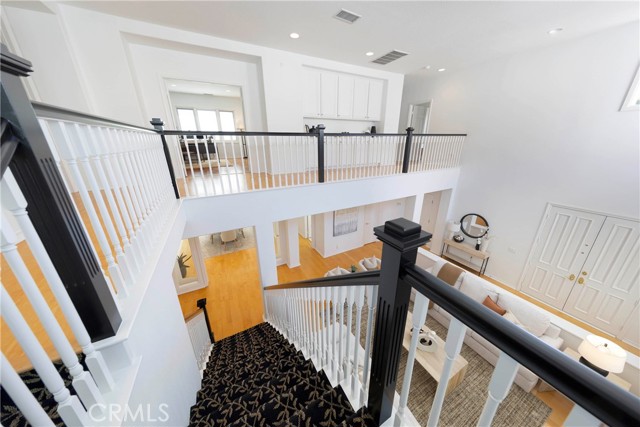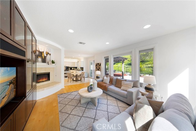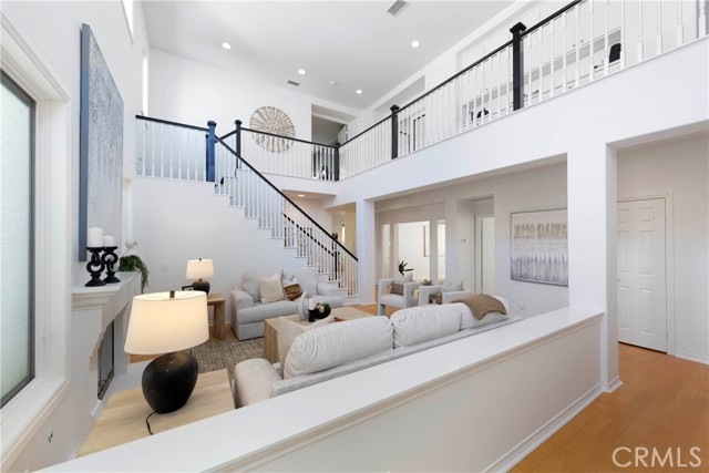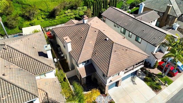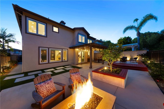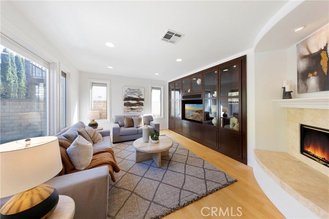 Nestled behind the gates of OakView in the prestigious Westridge community of Aliso Viejo, this exceptional 3,541-square-foot home offers five spacious bedrooms plus a dedicated office, blending timeless design with thoughtful upgrades throughout. Soaring vaulted ceilings elevate the living room, where one fireplace creates a warm focal point, while a second fireplace anchors the inviting family room with custom built-ins. Two bedrooms open to a charming front balcony, adding outdoor space and coastal-inspired views. The beautifully appointed kitchen features stainless steel appliances and flows seamlessly into the main living areas, ideal for both everyday comfort and entertaining. Extensive upgrades include Pella Lifestyle Series wood casement windows with triple-pane glass, integrated fabric shades, pine wood interior trim detailing, and interior-mounted screens, along with a QuietCool Whole House Fan system and a tankless water heater for modern efficiency. The garage is outfitted with custom cabinetry, a workbench, storage racks, and upgraded lighting. Step outside to an entertainer’s backyard complete with a custom patio cover featuring translucent panels and café lighting, as well as a stylish fire pit with black rock accents—creating the perfect setting for gatherings and relaxed evenings in one of Aliso Viejo’s most sought-after gated communities.