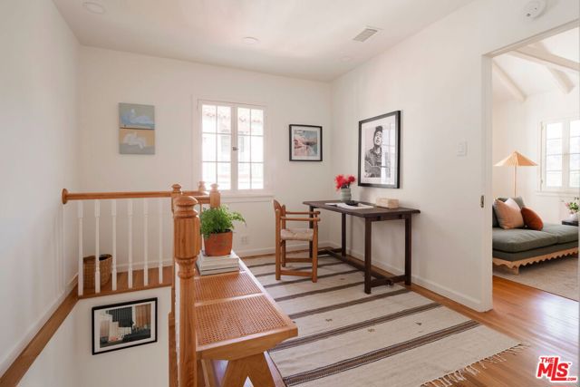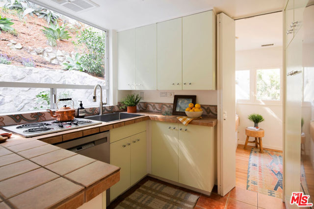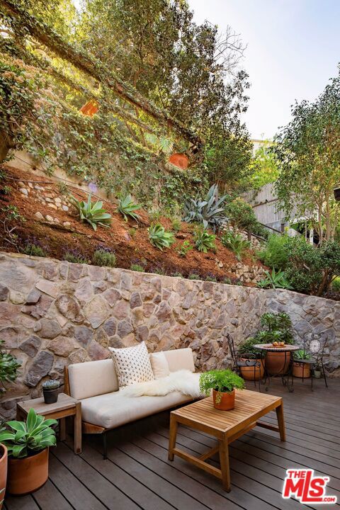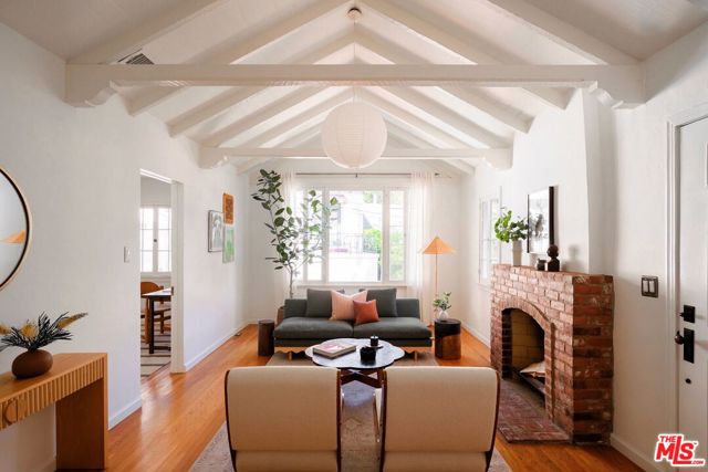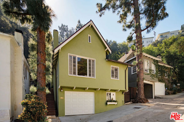 At the top of a quiet cul-de-sac in coveted Beachwood Canyon, this romantic 1920s English cottage is a true sanctuary in the city. Filled with natural light, the living room features a large picture window, vaulted beamed ceilings, original wood floors, and a fireplace, creating a feeling of warmth that flows seamlessly into the dining area. With multiple garden patios and an upper terrace with hillside views, find effortless indoor-outdoor living beneath the canyon sky. Two bedrooms and a dedicated office are thoughtfully arranged to offer comfort and versatility, while the updated kitchen and bath honor the home's original architecture with refined finishes. With a one-car garage, EV charger, and an additional off-street parking place, recent system upgrades include a tankless water heater, newer HVAC, and a 200-amp electrical panel. A rare and soulful Hollywood Hills retreat just moments from Beachwood Village, the Secret Stairs, and scenic canyon trails, this home is not to be missed.