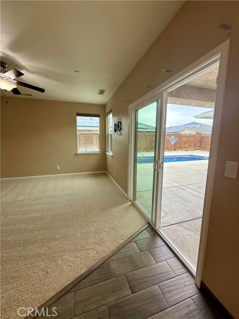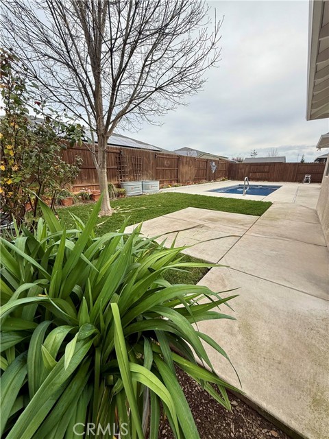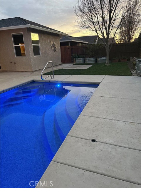 Beautiful 2019 Bill Webb home with custom built inground saltwater pool that is move-in ready. Features include open floorplan, vaulted ceilings, granite countertops, kitchen pantry, eating bar, dining area, a focal place fireplace, gas stove top, tankless water heater, custom cabinetry, decorator tile and new carpet. Master bedroom is a retreat with lots of storage, closets, vaulted ceilings, and a private access to pool area and backyard. Spa ready and there is even a rare side yard big enough for parking for extra vehicles, rvs, or boats, depending on size. Delight your green thumb with raised garden beds and a green house. Sit under the covered patio to enjoy hot summer days while playing in the low maintenance pool. The large 2 car garage is finished and has with premium flooring. To top it all off, this home is only 3 doors down from the popular Hartley Park open space, playground, and walking path. The new Aquatics center is being built less than 1/2 mile away, popular schools and restaurants nearby too.