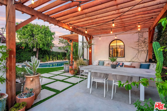 Step onto the grounds of this completely reimagined 1923 Spanish Revival, perfectly positioned on a coveted, quiet street near Hancock Park and Larchmont Village. This residence offers the rare combination of historic architecture and uncompromising modern function. As you enter, the main house immediately showcases a brilliant, single-level floor plan laid with premium Real Oak flooring and modern upgrades throughout. Your eye is drawn to the formal living room, anchored by a stately gas fireplace, leading effortlessly into the expansive dining and entertaining spaces. The home's renovation is a testament to quality, defined by luxurious, custom finishes and integrated technology. The gourmet kitchen features appliances from Fisher Paykel and Bosch, charmingly complemented by a vintage O'Keefe and Merritt range, all set against a backdrop of artisan tiles, stainless steel, and rich wood finishes. Every door you touch is a piece of quality, as the home and the detached ADU boast custom solid wood doors throughout. The three full bathrooms stand as bespoke sanctuaries, offering a touch of refined luxury. They feature wall-hung Swiss Madison toilets, custom cabinetry, and the comfort of heated flooring, all accented by stunning artisan tile selections from Heath Ceramics, Zie, Cle, and Terrazzo. Modern living is seamlessly integrated throughout. The entire home is optimized with smart features, including keyless entry, Nest thermostats, indoor and outdoor speaker music system, and security provided by Ring. For the modern commuter, convenience is secured with a universal charger offering integrated electric vehicle readiness. The flow continues beautifully outdoors, where the Unrivaled Bonus itself a stunning, permitted Accessory Dwelling Unit (ADU) truly transforms into a spectacular pool house and entertaining hub. This casita is designed for effortless hospitality: its large Fleetwood sliding door and accordion windows open up the entire space next to the pool, welcoming you into a secluded Entertainer's Paradise. The backyard is completely private, setting the scene for spectacular gatherings around the centerpiece: the immaculately redone salt water pool, featuring exquisite Heath tiles and a new, remote-controlled equipment system. The adjacent outside bar seating and the romantic outdoor dining table under a pergola strung with cafe lights complete this luxurious resort atmosphere. As a true differentiator in the L.A. market, this structure is fully self-sufficient, boasting its own full gourmet kitchen, separate laundry, heated flooring, and custom finishes, allowing it to be utilized as a private guest suite, a high-income rental opportunity, or a sophisticated work-from-home office, offering unparalleled flexibility and value. This is more than a home; it's a ready-made lifestyle for the discerning buyer who appreciates historic charm enhanced by modern, impeccable design. This turn-key residence offers 4 Bedrooms and 3 Bathrooms across 2,219 square feet. Listed at $2,595,000, it represents a premier opportunity to acquire the pinnacle of life near Hancock Park.