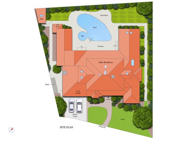Located on a quiet cul de sac just blocks from downtown Menlo Park, this 5 bedroom, 3.5 bath residence offers a rare 4,340 square feet of living space across two levels, all above grade. With its generous scale and well-proportioned rooms, the home presents an outstanding opportunity to create a modern family retreat in one of Menlo Park's most sought-after neighborhoods. A formal living room with fireplace and raised ceiling sets an inviting tone, while the dining room overlooks the private rear grounds. The kitchen features a center island and newer Wolf, Sub-Zero and Cove appliances, and flows to a spacious family room with fireplace, built-in bookcases, bar area and seamless access to the backyard for easy indoor-outdoor living. The main level primary suite includes a large bath, walk-in closet and direct yard access, while a fifth bedroom on the main floor is ideal for a dedicated office or flex space. Upstairs, three additional bedrooms offer walk-in closets and a shared hall bath. The backyard includes a generous patio, pool with adjoining recreation room and great perimeter privacy. Served by top Menlo Park schools including Oak Knoll and Hillview, this is a rare chance for the next owner to thoughtfully update and elevate a substantial home in a premier location.