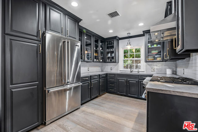 Welcome to "Casa Columbus", a thoughtfully reimagined traditional home tucked beneath a canopy of mature trees on one of Sherman Oaks' most picturesque tree-lined streets. Warm interiors blend timeless charm with curated modern refinement, where 5" plank wood floors, crown molding, and custom plantation shutters create an atmosphere of understated elegance. The fully renovated kitchen is both sculptural and functional, featuring Caesarstone concrete countertops and Viking appliances, while multiple sets of French doors invite seamless indoor-outdoor living. Living spaces are anchored by a cozy fireplace and elevated by bespoke artisan lighting, adding character and quiet sophistication throughout. Beyond the interiors, the backyard unfolds as a lush private retreat where night-blooming jasmine and ivy soften the stucco walls surrounding a reimagined pool and spa, recently upgraded with new PebbleTec finish, tile, lighting, and energy-efficient systems. Brick patios and intimate lounge areas create an environment equally suited for tranquil evenings or stylish entertaining. The property also presents exciting value-add potential with the opportunity to expand above the garage which can be perfectly suited for an in-law suite, recording studio, home gym, home office, or other creative use. Located within the award-winning Kester Elementary School District. Within close proximity to Sportsmen's Lodge, Sherman Oaks Galleria, and all of the best restaurants, boutiques, and entertainment that Sherman Oaks and Studio City have to offer. Truly an exceptional and charming home all at an attractive price for a turnkey home in Sherman Oaks.